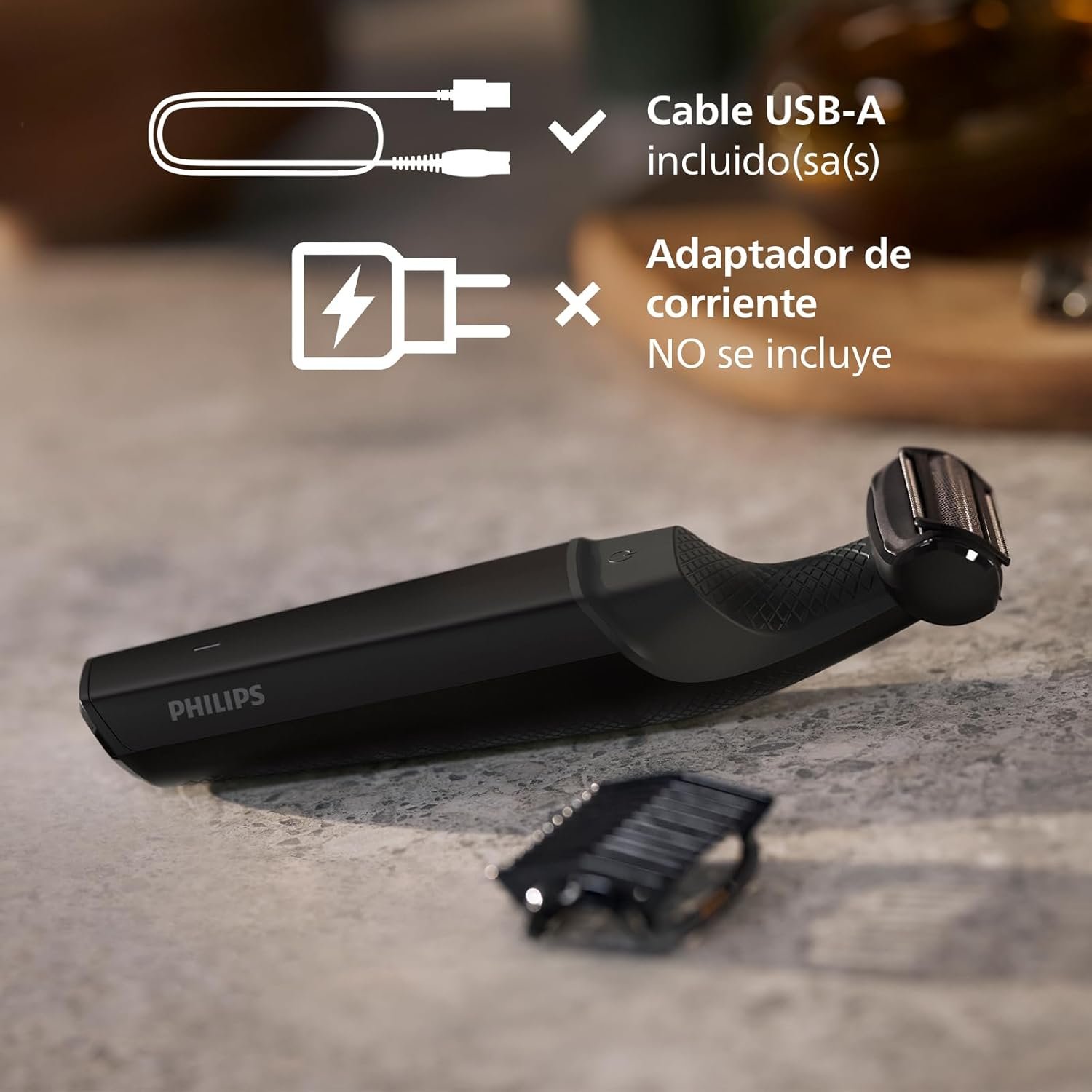 Con su autonomía de 50 minutos, no tendrás que preocuparte por quedarte sin batería rápidamente. Además, incluye un guía de peine que permite ajustar la longitud del vello, brindándote un corte personalizado para ese look siempre perfecto. Su diseño ergonómico y su acabado en gris y negro no solo lo hacen atractivo, sino también fácil de manejar.