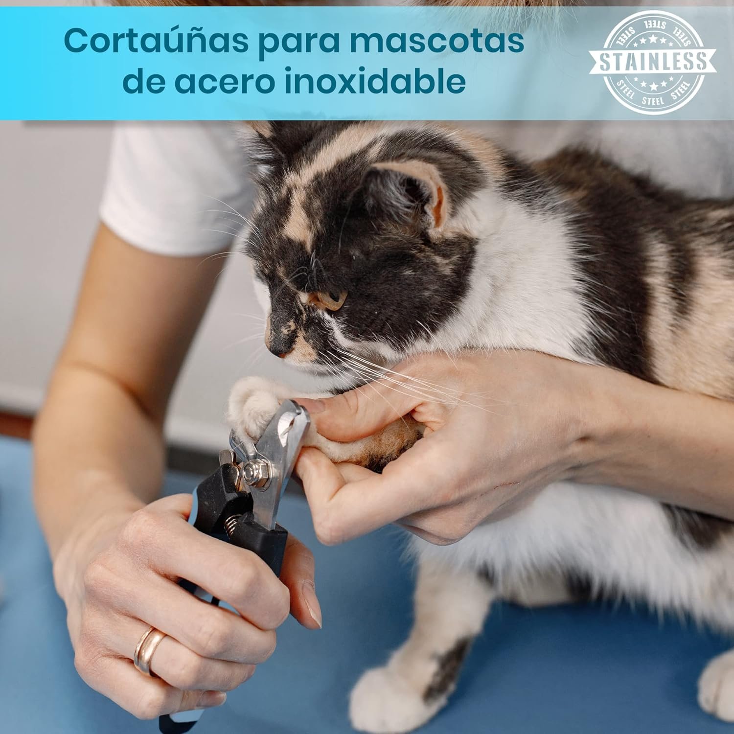 Hechos de acero inoxidable de alta calidad, aseguran un corte limpio y preciso. Su diseño ergonómico permite un agarre cómodo, lo que facilita la tarea de mantener las uñas de tus mascotas en perfectas condiciones. La protección de seguridad evita que cortes demasiado, brindándote confianza en cada uso.