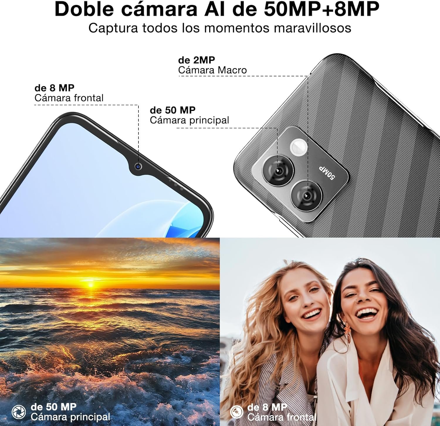 La pantalla de 6.52" HD+ proporciona una calidad visual nítida, ideal para la visualización de contenido multimedia y navegación. En el apartado fotográfico, el N50PRO cuenta con una cámara trasera de 50MP, que permite capturar imágenes de alta resolución y con detalles precisos, acompañada por funciones avanzadas de fotografía.