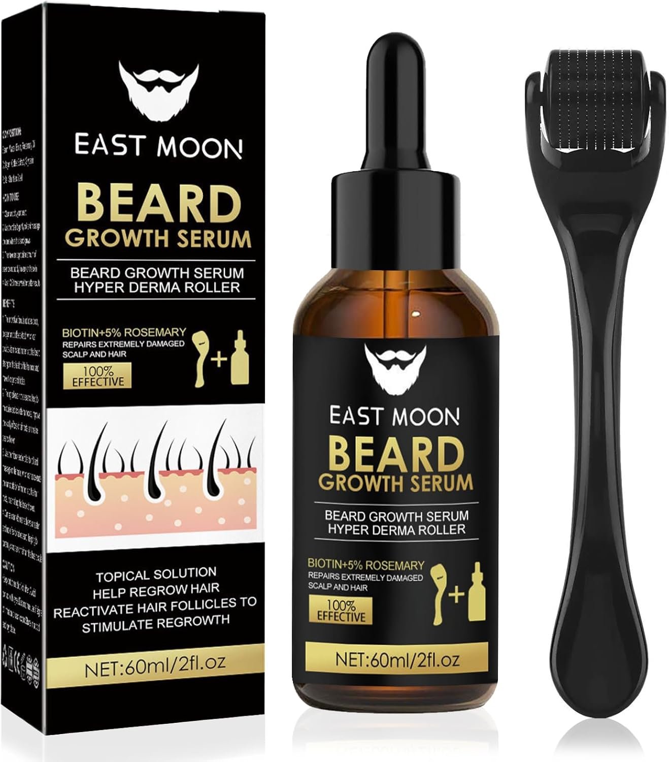Kit para crecimiento de barba y bigote, incluye aceite y rodillo.