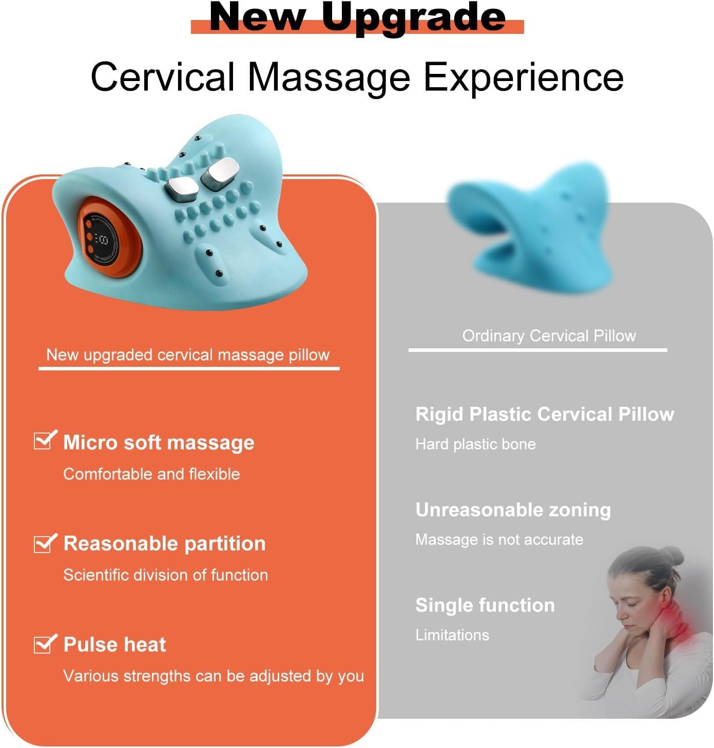 - Diseño Ergonómico: Con su forma cómoda, se adapta perfectamenta a tu cuello, creando una sensación de "nube" que te hará olvidar la tensión.