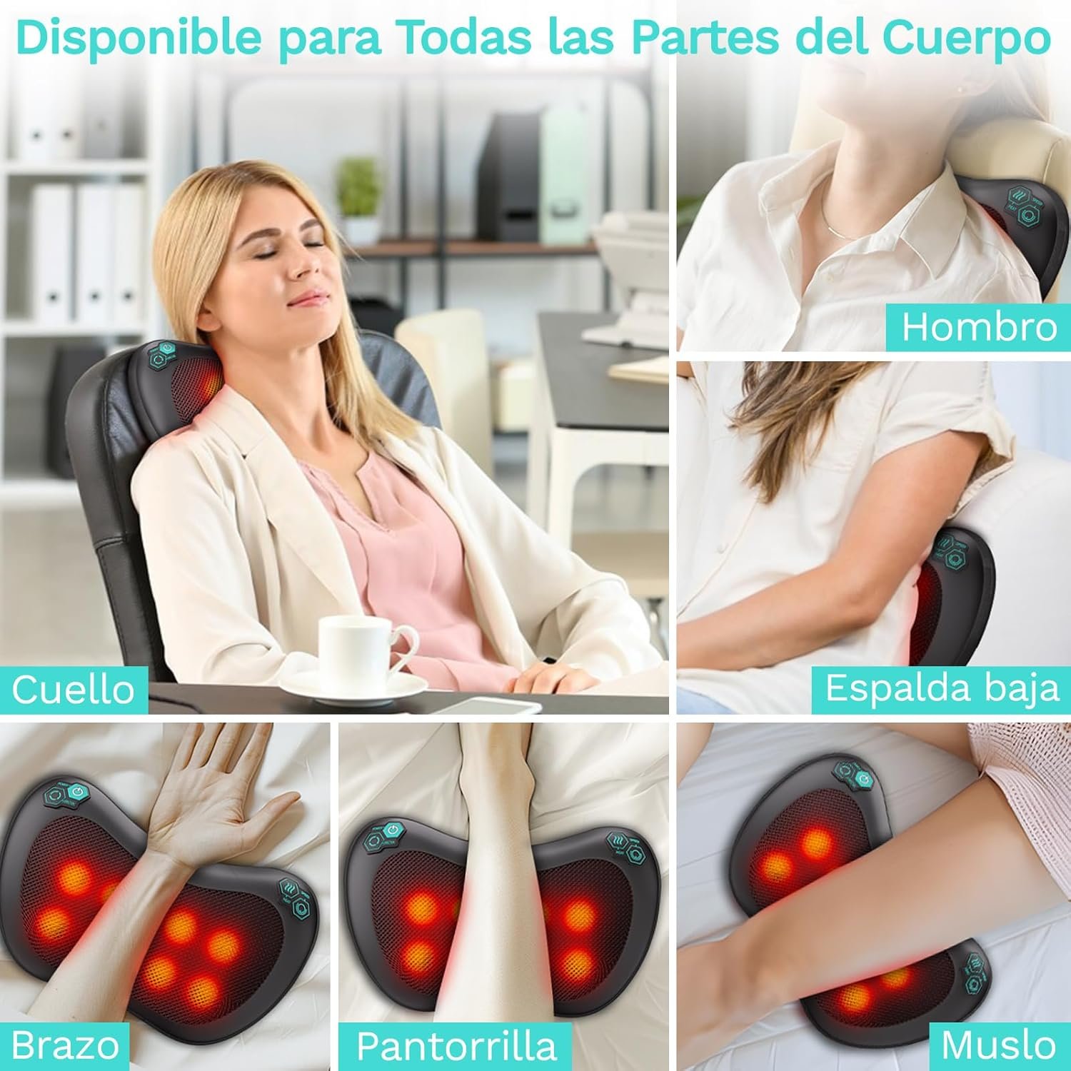 Masajeador de shiatsu con 8 nudos, 3 velocidades y rotación.