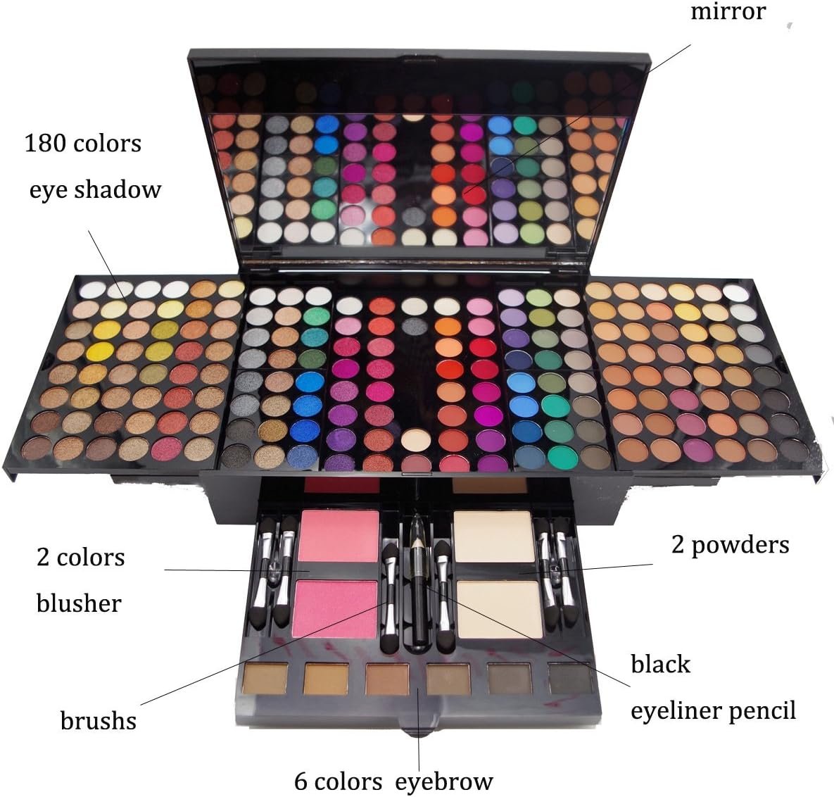 Resume el contenido del producto de manera muy amigable y sobre todo enfocado a las mujeres en 250 palabras sobre 190 Colors Eye Shadow Cosmetic Makeup Palette – Includes Blush and Compact Powders, editando el texto y subrayando las características clave del árticuloPrecio en Amazon: €52.50 (as of Apr 24, 2026 04:24:20 UTC – Detalles del precio)