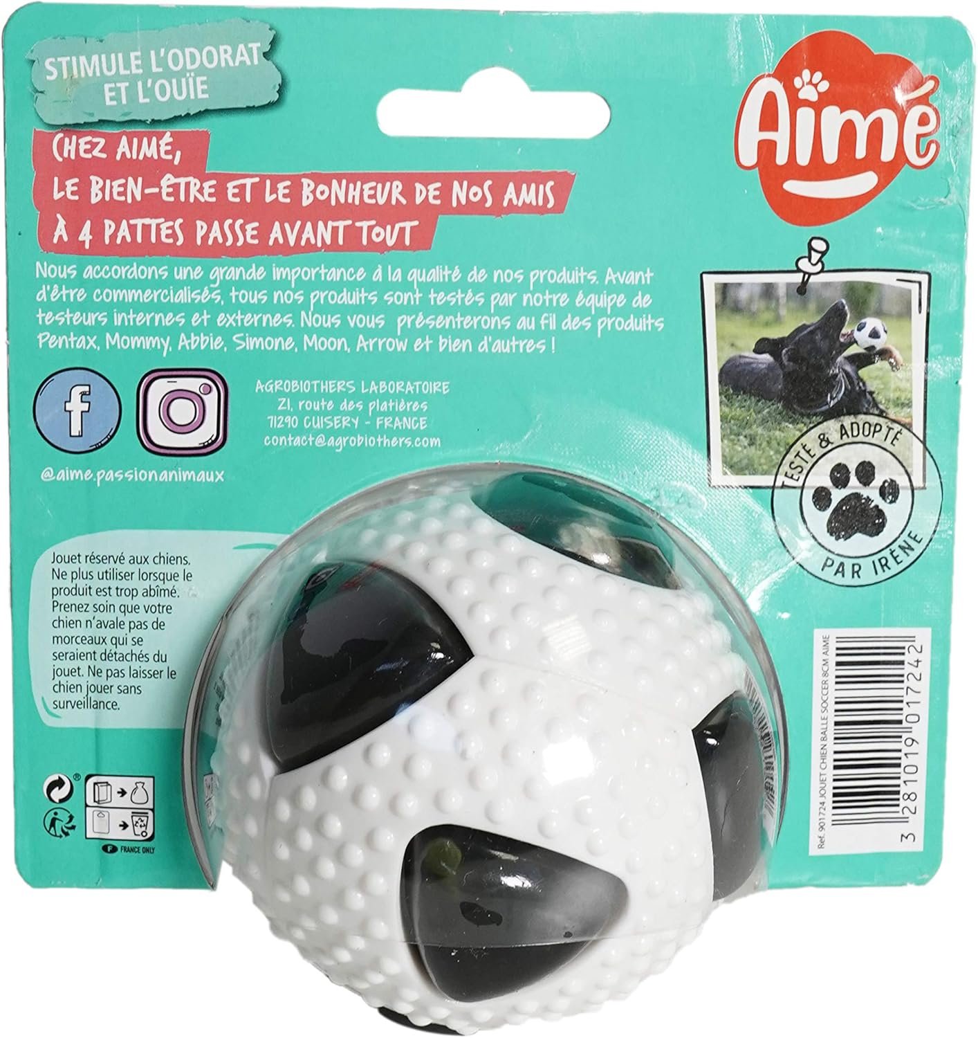 Resume el contenido del producto de manera muy amigable y sobre todo enfocado al cuidado de mascotas y la salud de ellas en 250 palabras sobre Aimé | Interactive Dog Toys | Football Dog Balls with Sound and Bell | Beef Smell | Dog Toys That Stimulate Smell and Ear of Your Pet| Dog Ball 8cm, editando el texto y subrayando las características clave del articuloPrecio en Amazon: €8.79