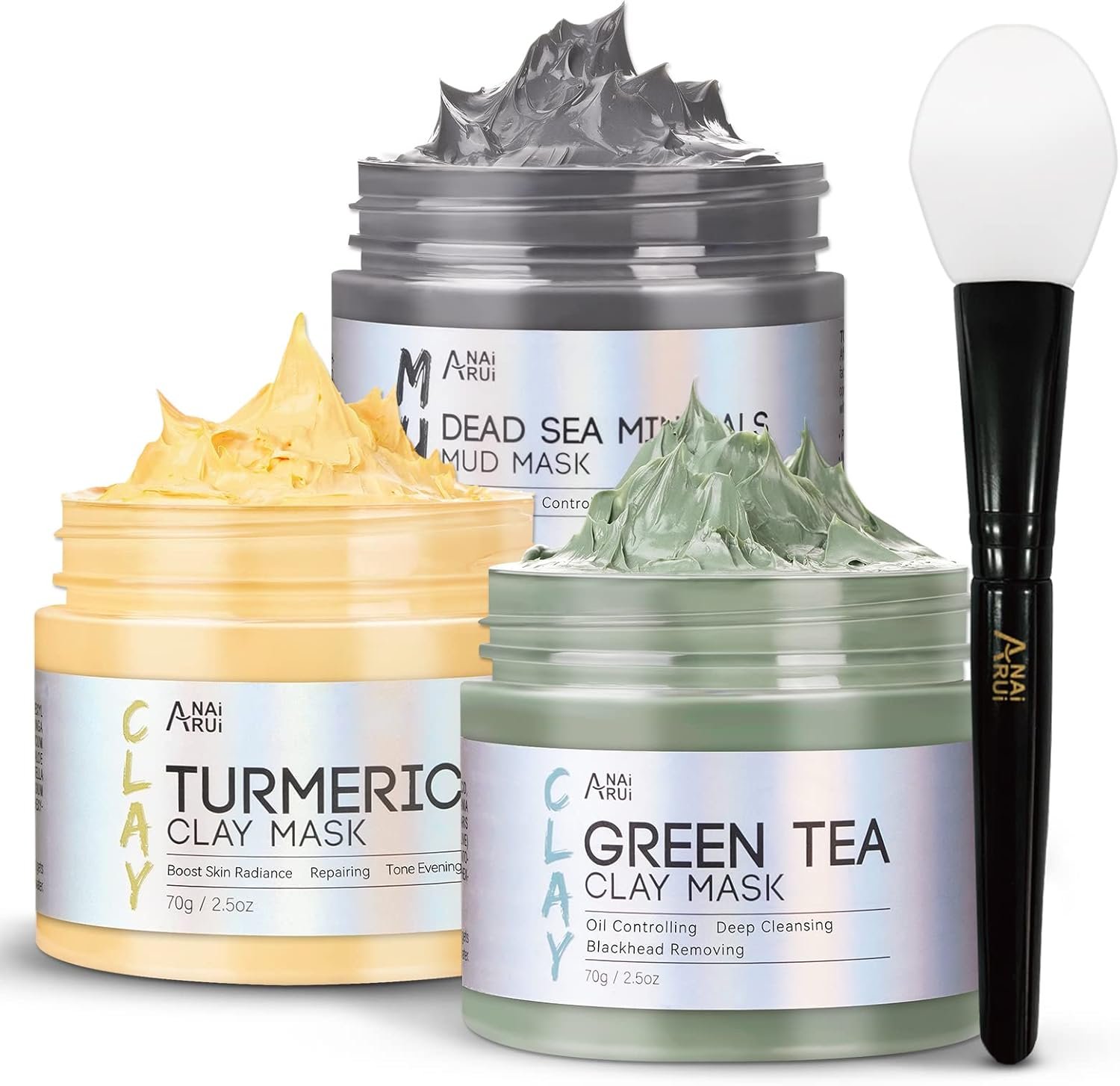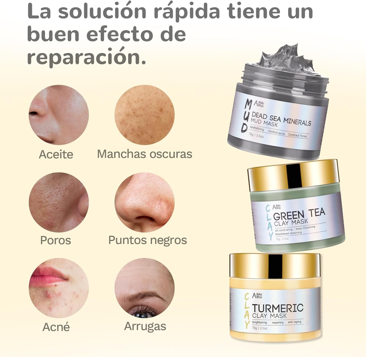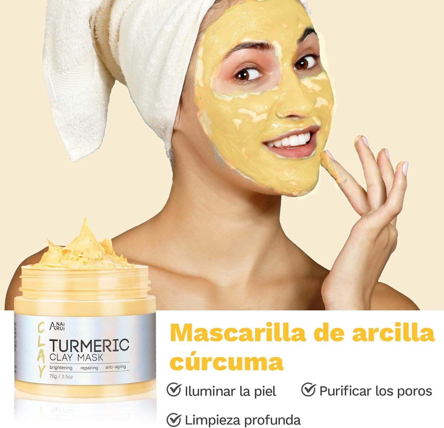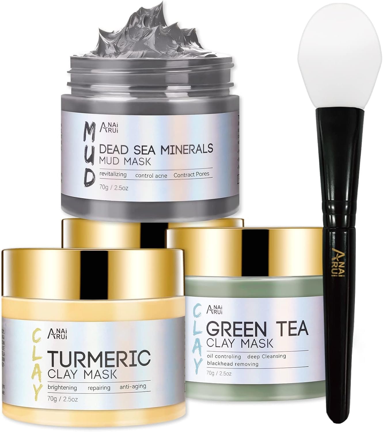 Resume el contenido del producto de manera muy amigable y sobre todo enfocado a las mujeres en 250 palabras sobre ANAiRUi Turmeric Face Masks + Green Tea Clay Mask + Dead Sea Mud Mask – For Deep Cleansing, Moisturizing and Purifying, Detoxifying, 210g, editando el texto y subrayando las características clave del árticuloPrecio en Amazon: €21.99 (as of Mar 06, 2026 04:14:42 UTC – Detalles del precio)