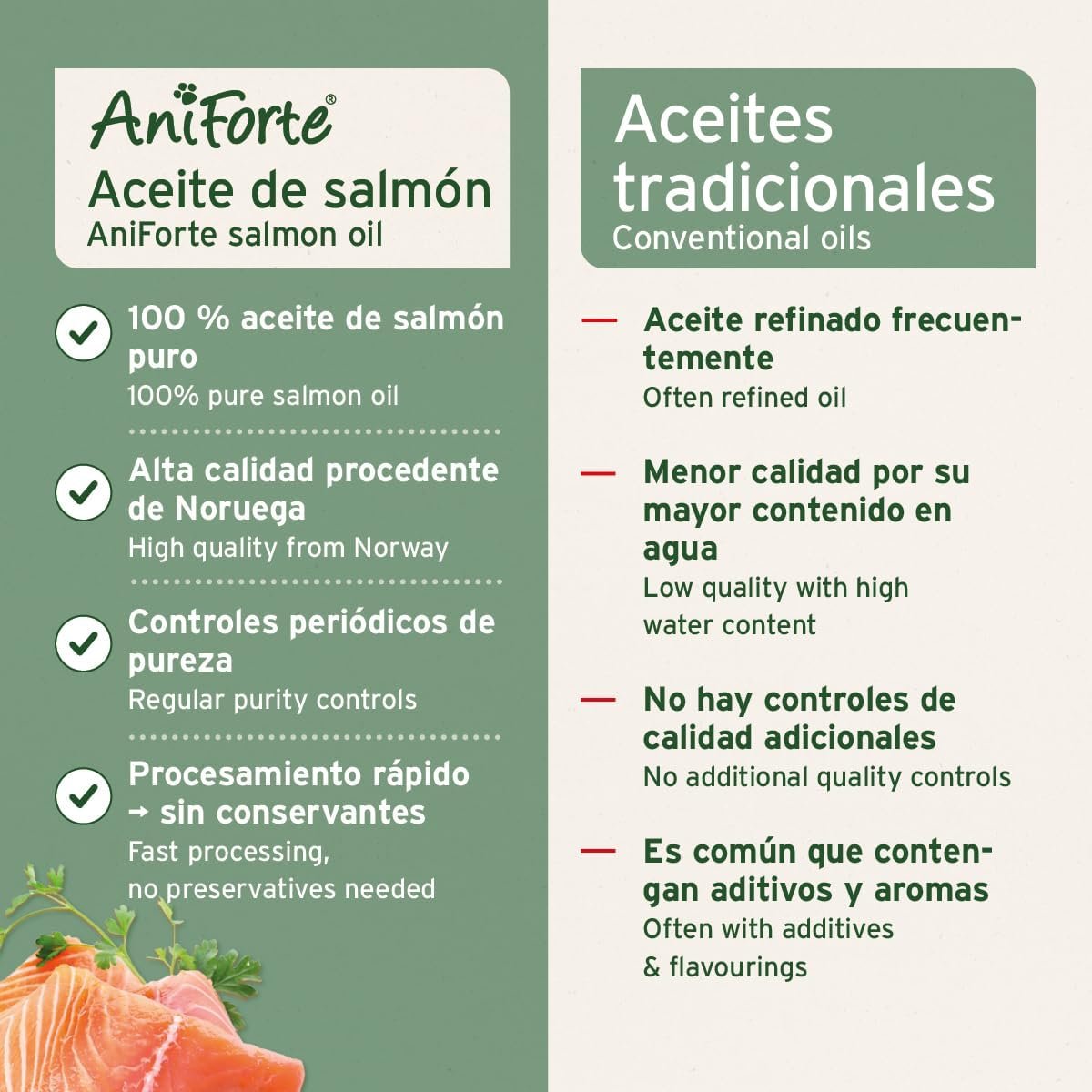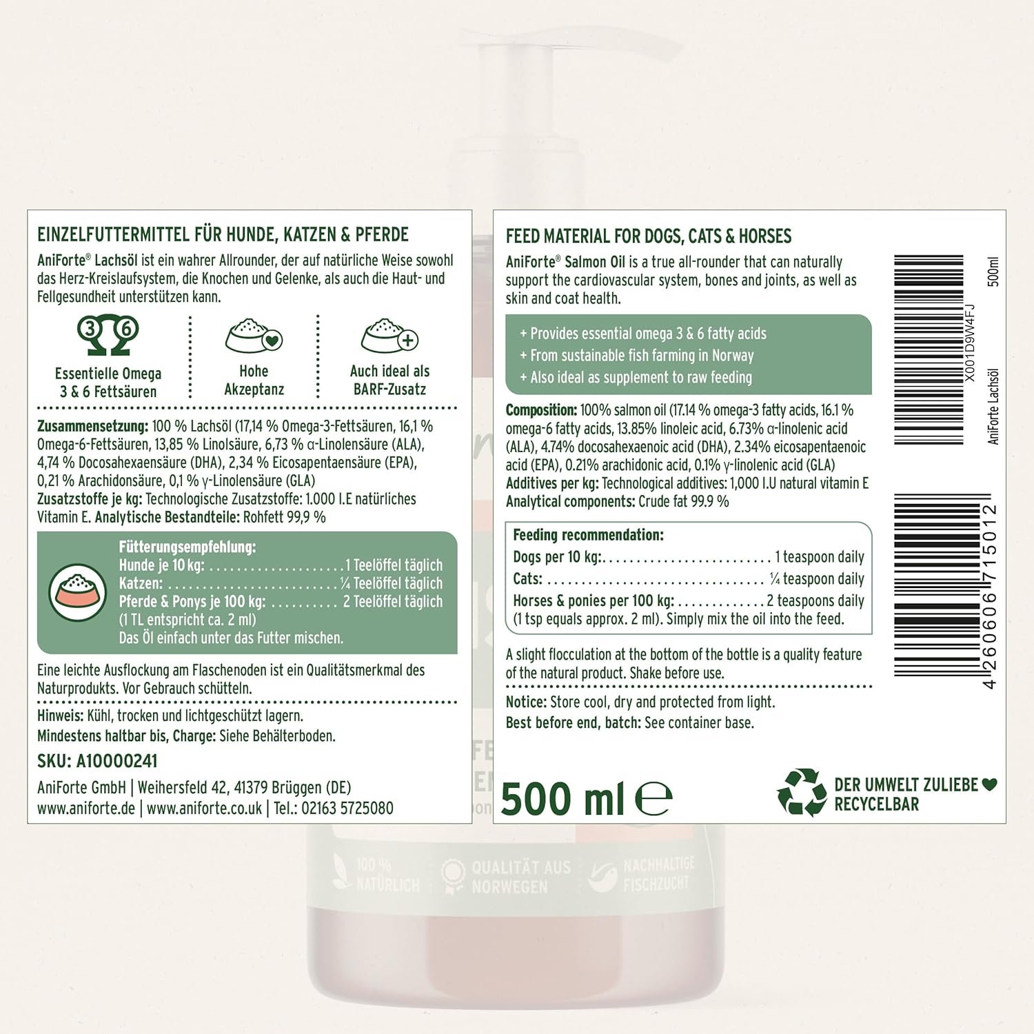 Resume el contenido del producto de manera muy amigable y sobre todo enfocado al cuidado de mascotas y la salud de ellas en 250 palabras sobre AniForte Premium Salmon Oil for Dogs and Cats 500ml – 100% Natural Contains Omega 3 Fatty Acids, EPA, DHA and Linolenic – Beneficial for Strong Bones and Shiny Coat, editando el texto y subrayando las características clave del articuloPrecio en Amazon: €15.99 (as of Apr 08, 2026 14:21:11 UTC – Detalles del precio)