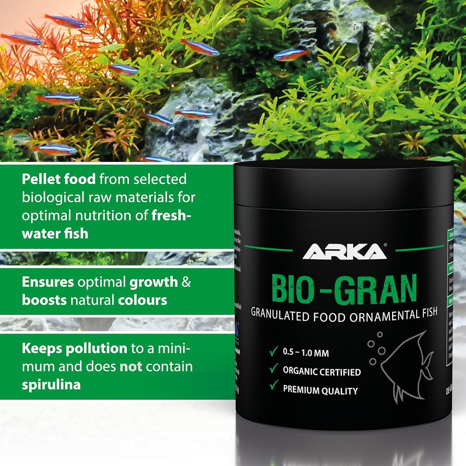 Resume el contenido del producto de manera muy amigable y sobre todo enfocado al cuidado de mascotas y la salud de ellas en 250 palabras sobre ARKA – Bio Gran – Fish Food Based on Certified Organic Raw Materials – Freshwater Aquarium – Content: 500 ml / 230 g, editando el texto y subrayando las características clave del articuloPrecio en Amazon: €9.20 (as of Apr 17, 2026 14:46:41 UTC – Detalles del precio)