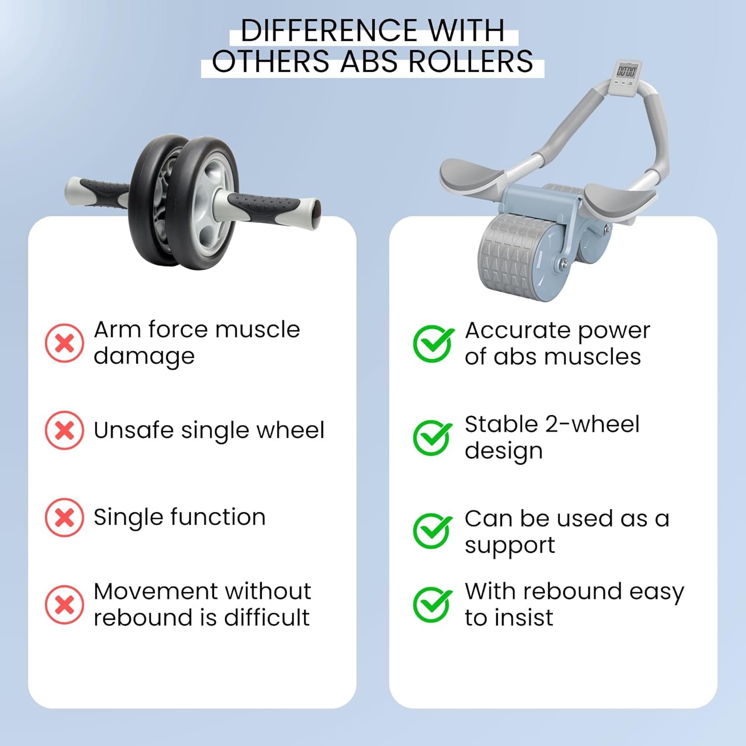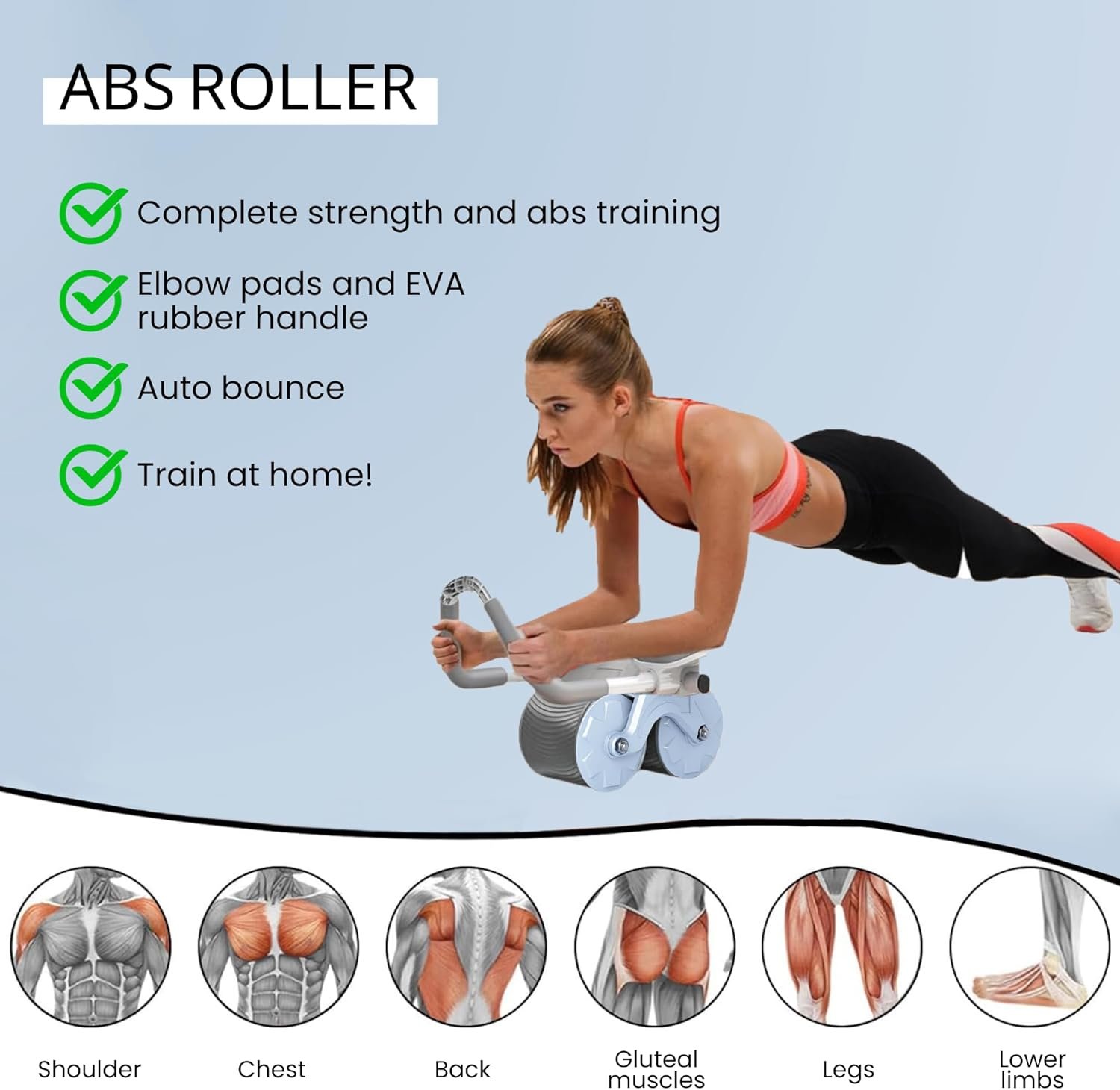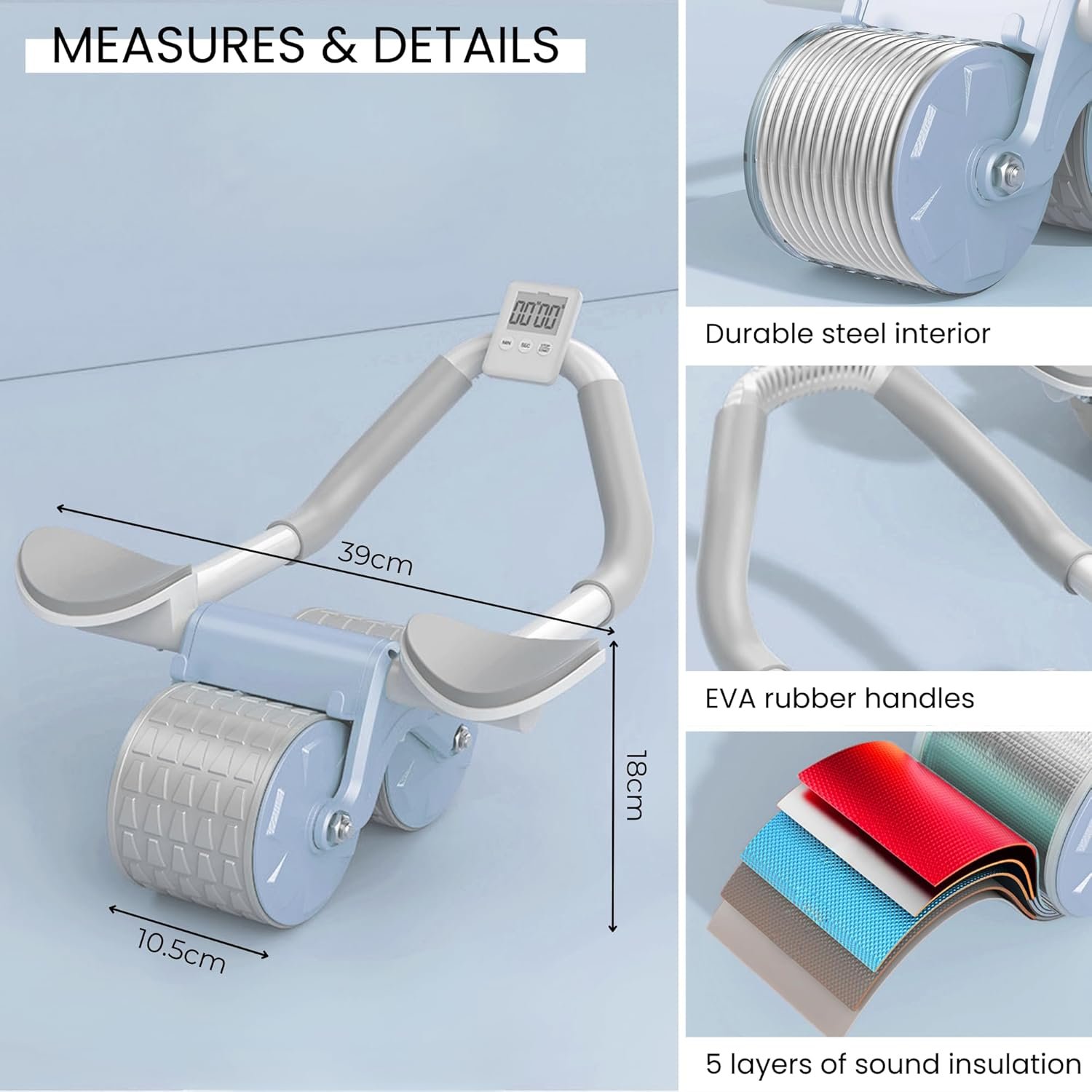 Resume el contenido del producto de manera muy amigable y sobre todo enfocado al fitness y la salud en 250 palabras sobre Automatic Rebound Wheel for ABS Home Training Kit with Knee Pad and Stopwatch Included Sport for Beginners at Home, editando el texto y subrayando las características clave del articuloPrecio en Amazon: €16.99