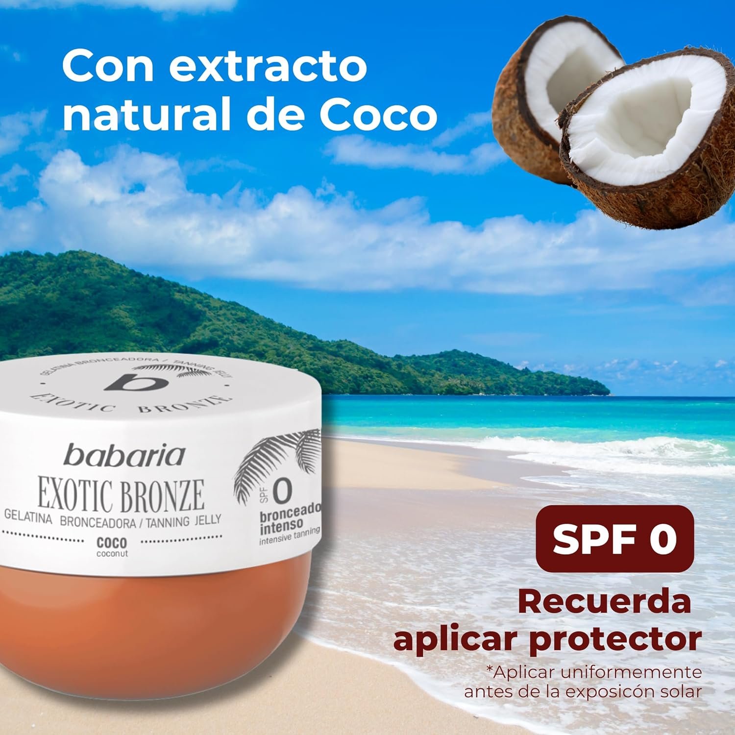 Resume el contenido del producto de manera muy amigable y sobre todo enfocado a las mujeres en 250 palabras sobre Babaria – Exotic Bronze Coco F-0 | Intense Body Self Tanner | Body Bronzer | Body Self Tanning Cream | Body Tanning Cream | Tanning Oil, editando el texto y subrayando las características clave del árticuloPrecio en Amazon: €10.40 (as of Dec 29, 2025 05:11:01 UTC – Detalles del precio)