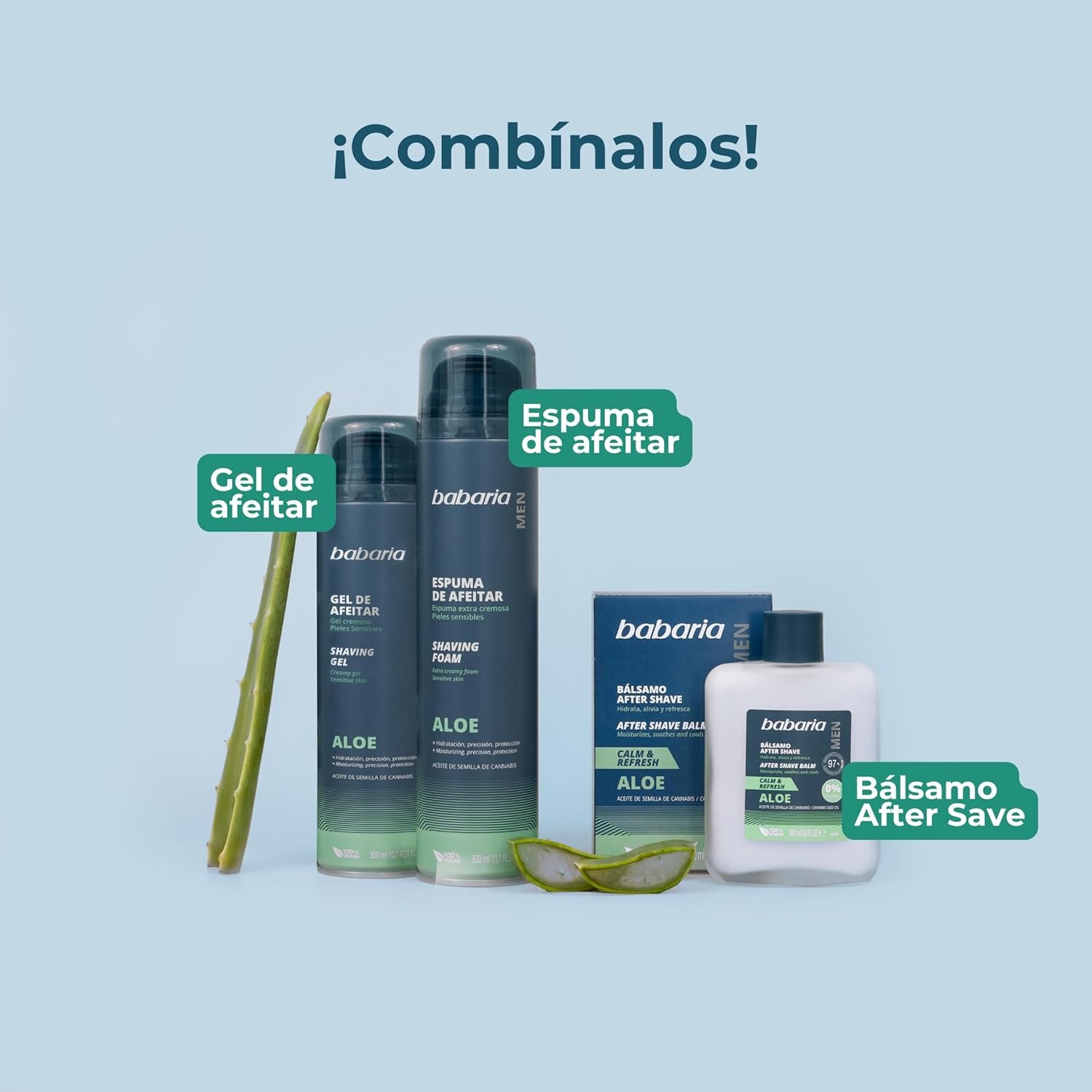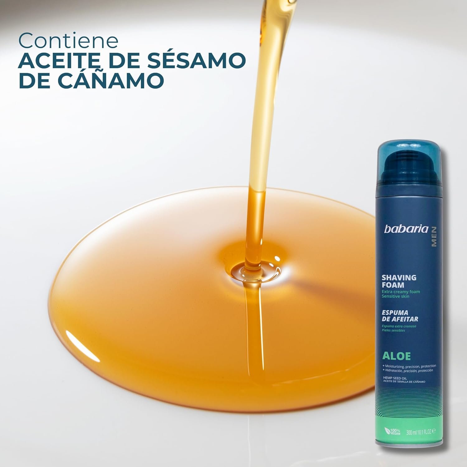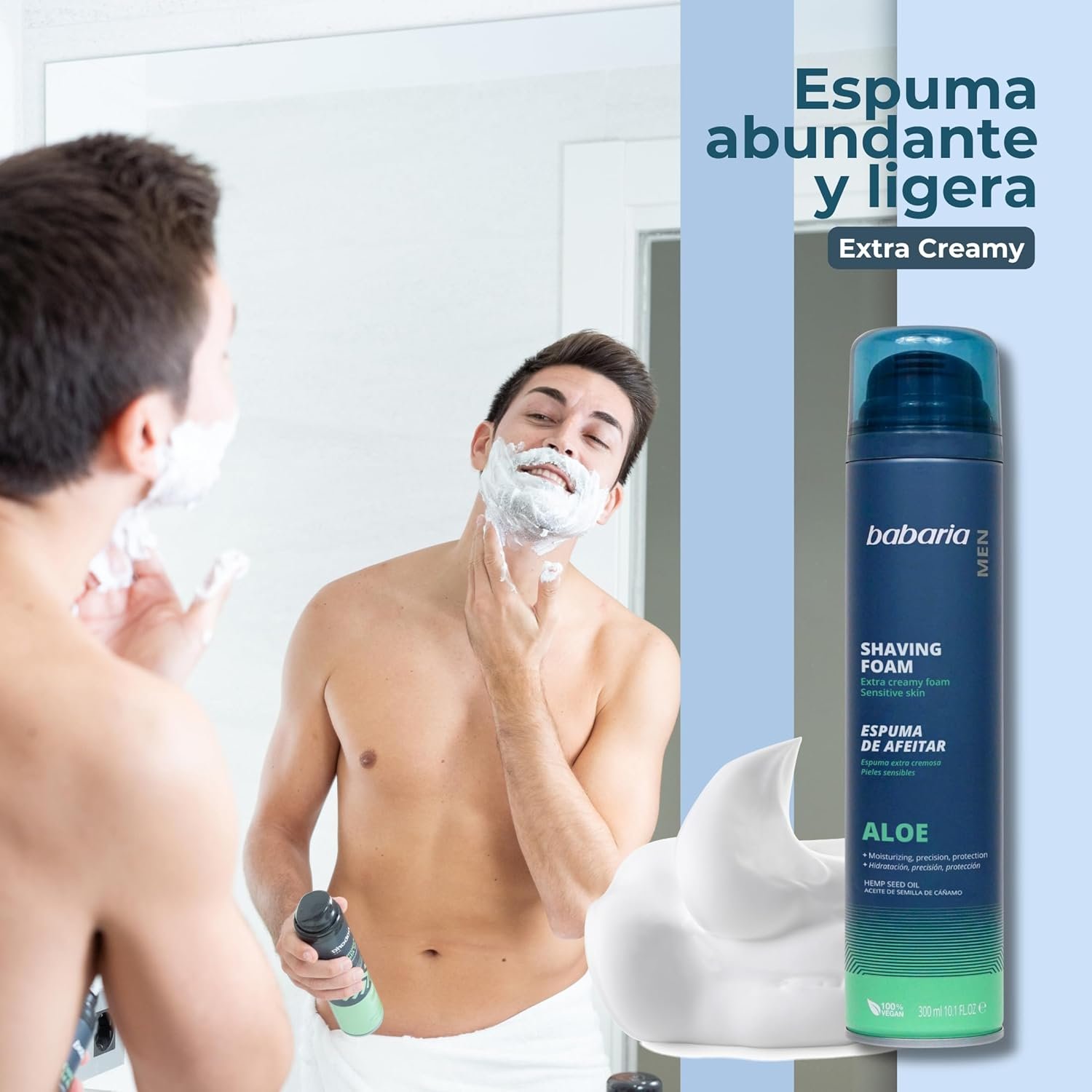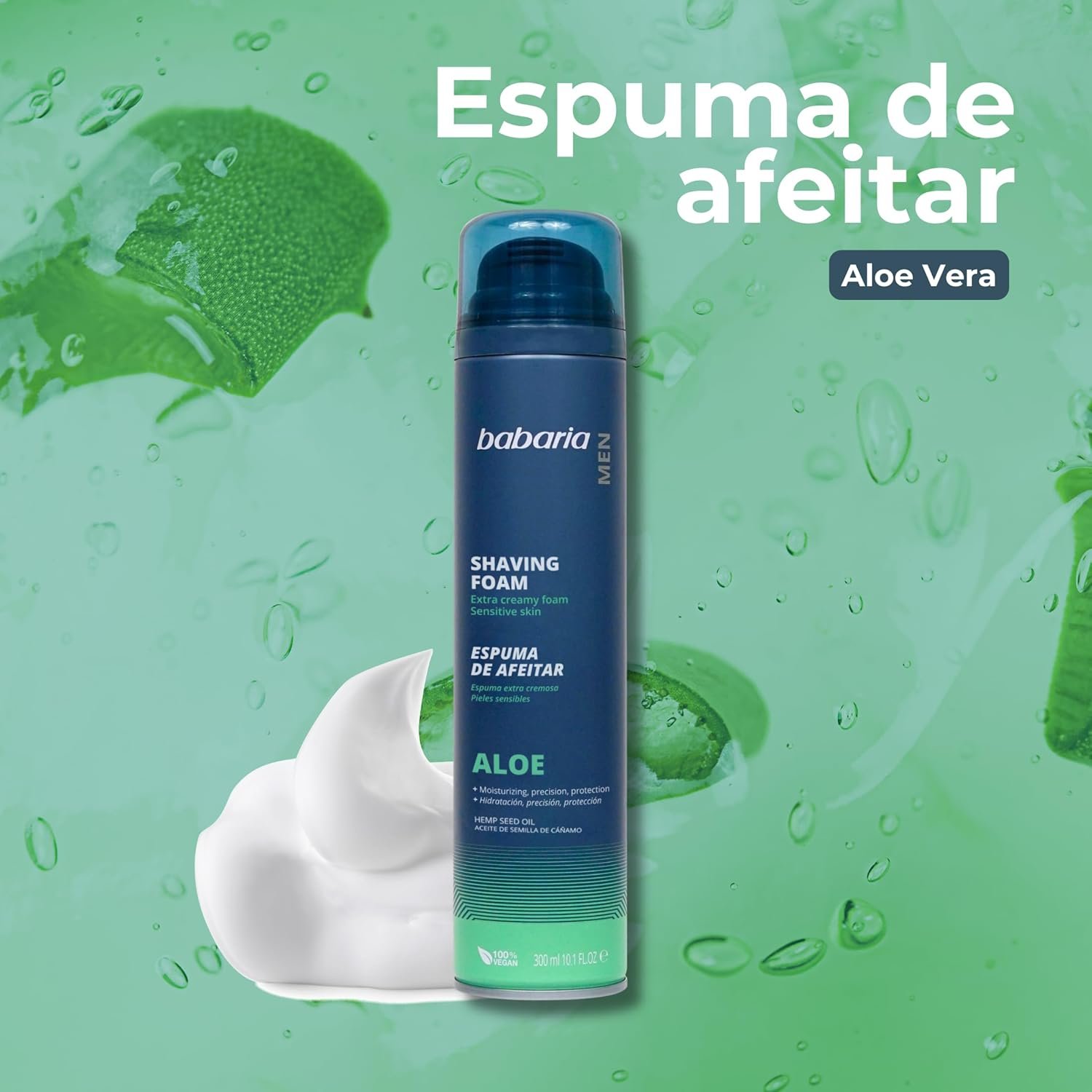 Resume el contenido del producto de manera muy amigable y sobre todo enfocado a los hombres en 250 palabras sobre Babaria – Shaving Foam with Aloe – Sensitive Skin – 300 Ml, editando el texto y subrayando las características clave del árticuloPrecio en Amazon: €2.59 - €1.95 (as of Jan 02, 2026 11:22:48 UTC – Detalles del precio)