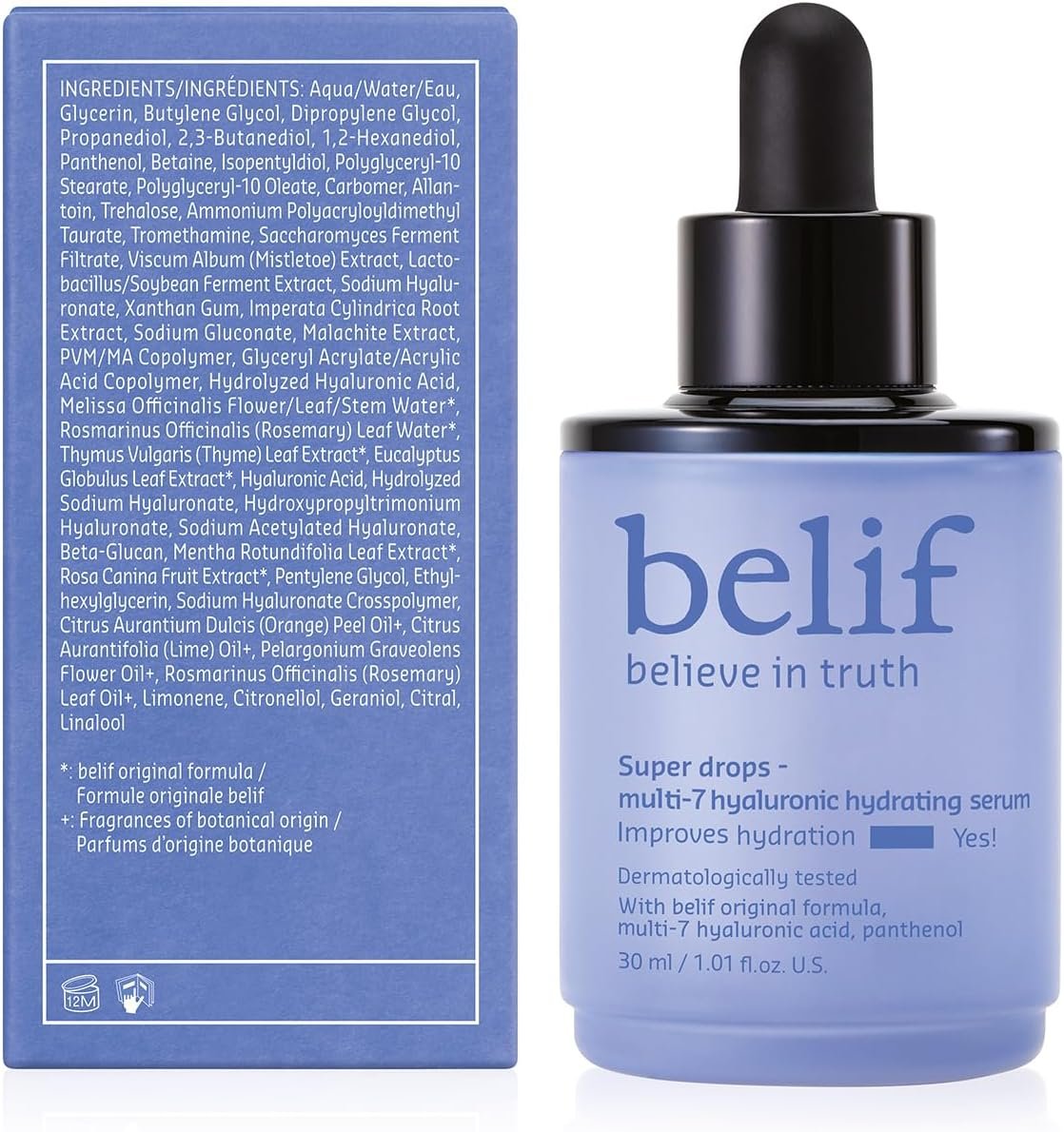 Resume el contenido del producto de manera muy amigable y sobre todo enfocado a las mujeres en 250 palabras sobre belif Super Drops Multi-7 Hyaluronic Hydrating Serum – Sérum Hidratante con 7 Tipos de Ácido Hialurónico | Hidratación Profunda y Luminosidad | Cosmética Coreana,Korean Skincare (30ml), editando el texto y subrayando las características clave del árticuloPrecio en Amazon: €29.00