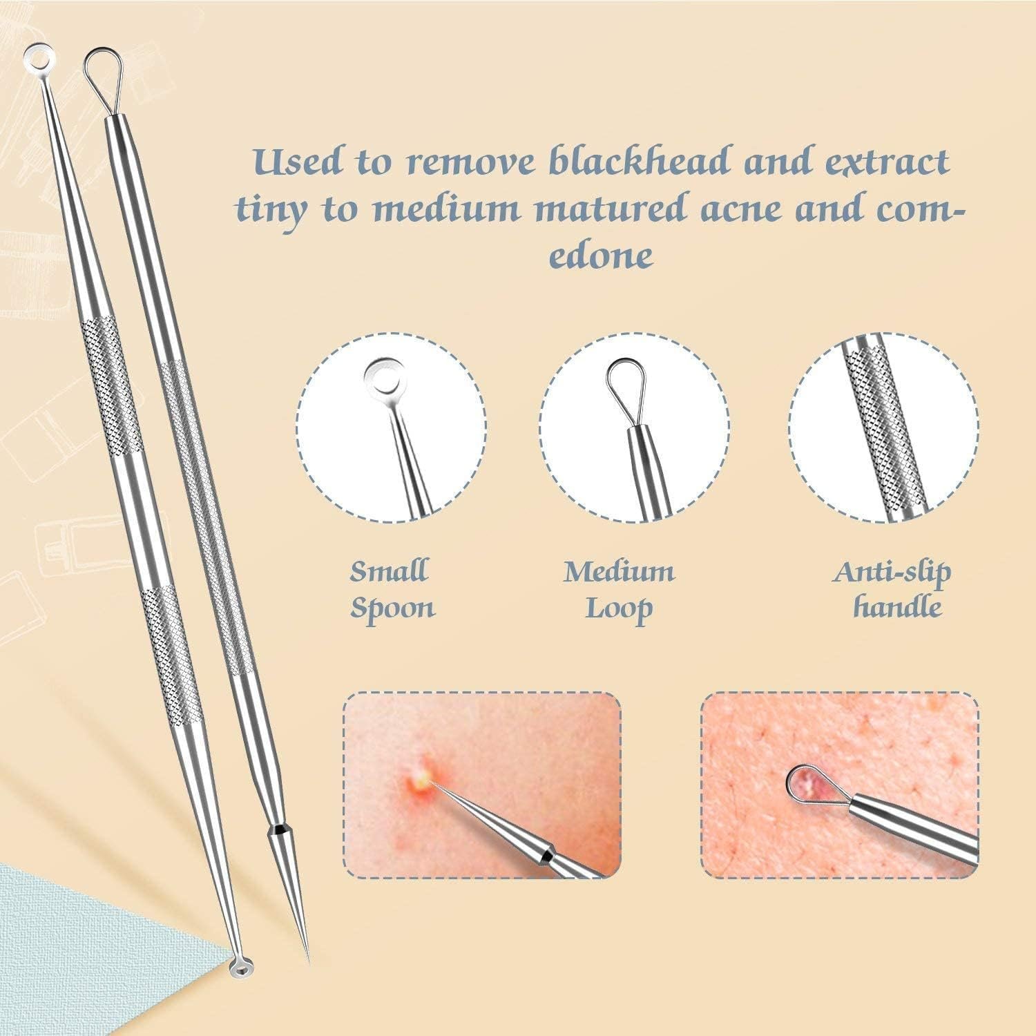 Resume el contenido del producto de manera muy amigable y sobre todo enfocado a las mujeres en 250 palabras sobre Blackhead Remover, 6 Piece Acne Remover Set – Tweezers Set with Metal Box Remover Tool, editando el texto y subrayando las características clave del árticuloPrecio en Amazon: €9.99 - €8.99 (as of Jan 31, 2026 04:34:19 UTC – Detalles del precio)