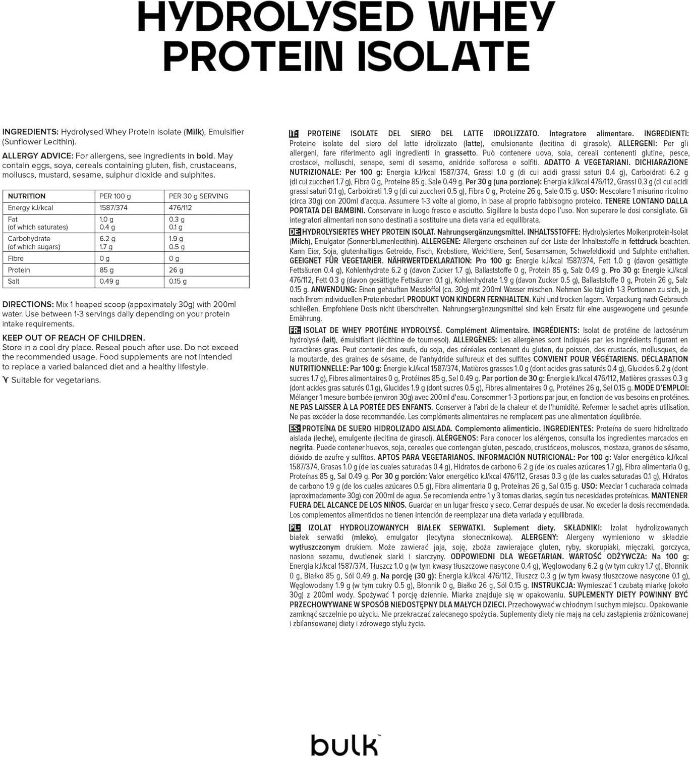 Resume el contenido del producto de manera muy amigable y sobre todo enfocado al fitness y la salud en 250 palabras sobre Bulk Hydrolyzed Whey Protein Isolate, Protein Shake, No Added Flavors, 500g, 16 Doses, editando el texto y subrayando las características clave del articuloPrecio en Amazon: €29.99 (as of Jan 24, 2026 16:22:49 UTC – Detalles del precio)