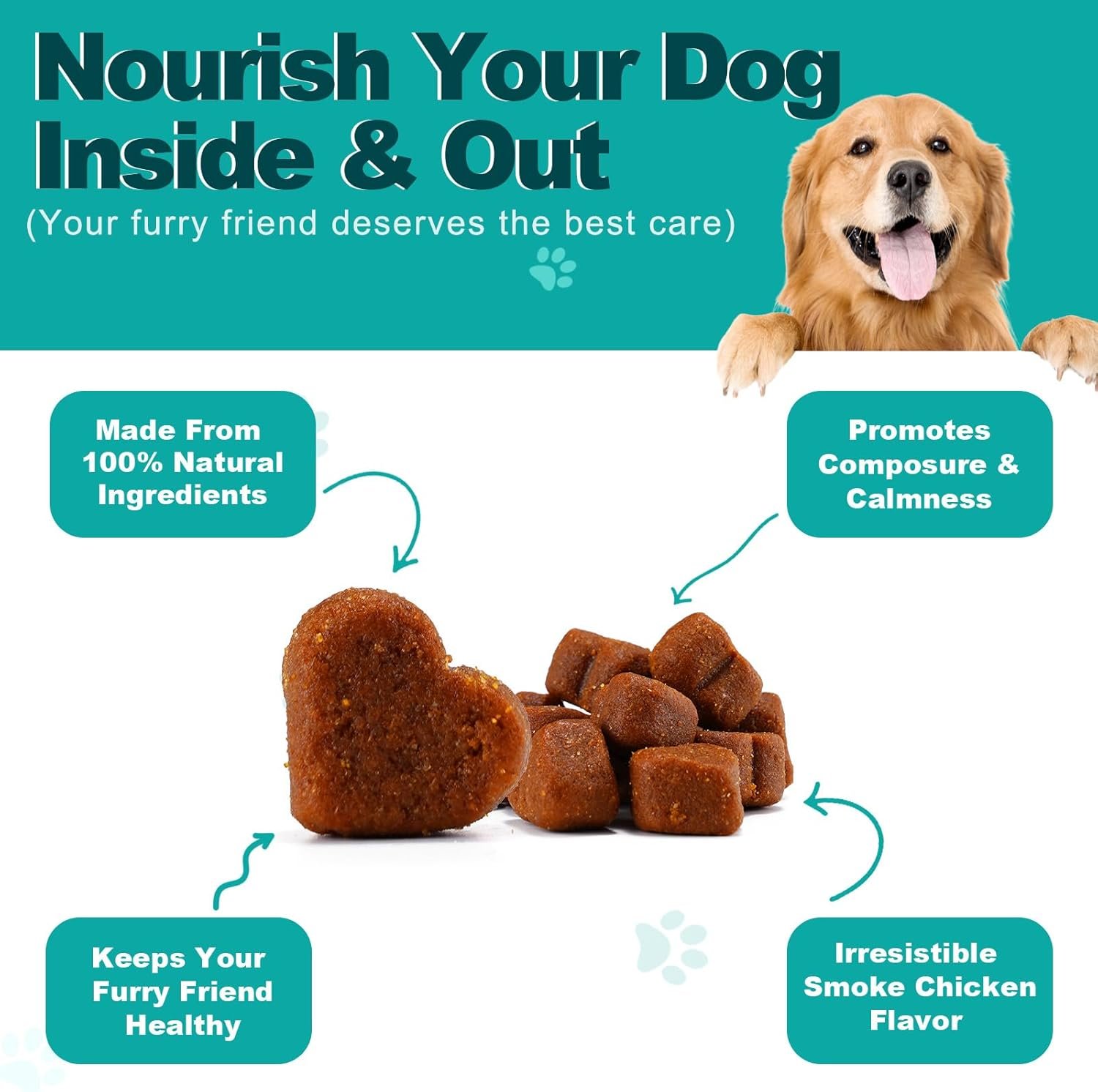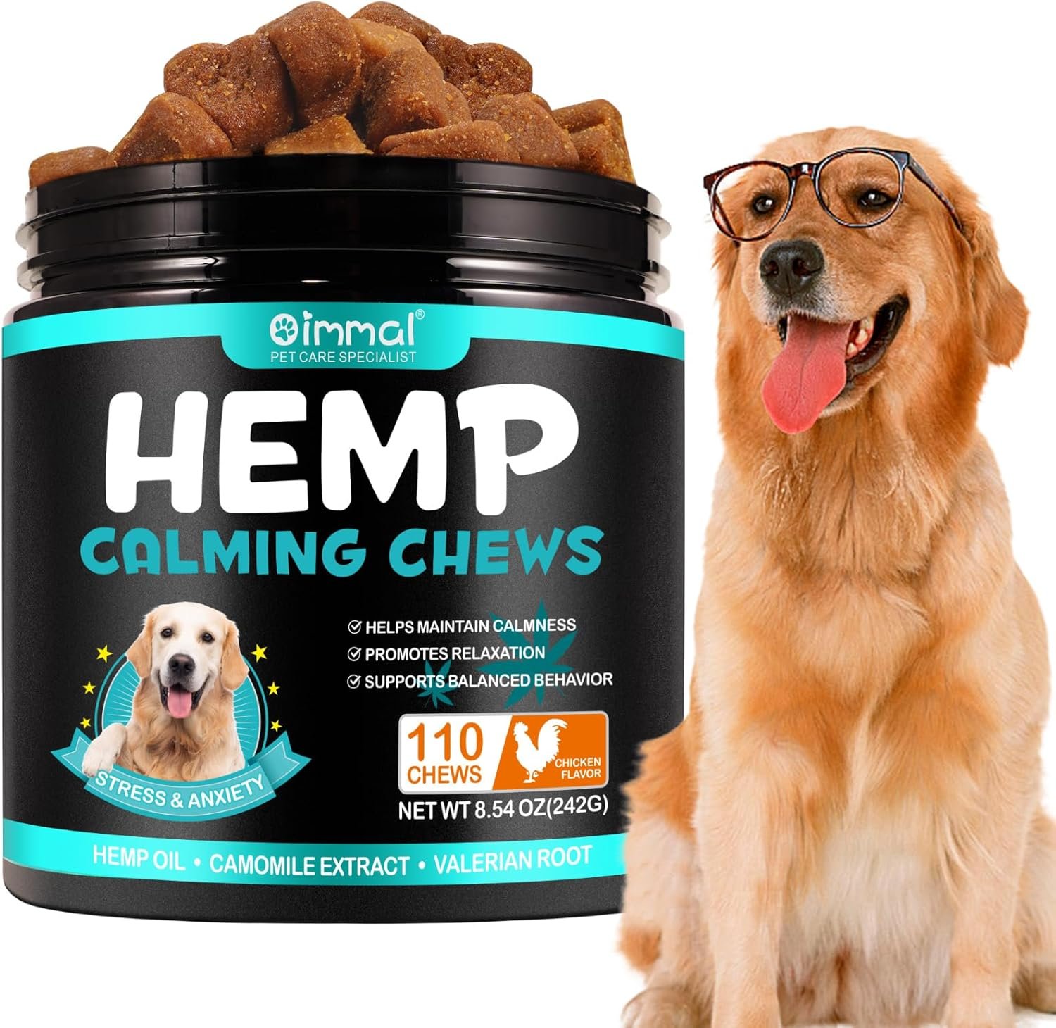 Resume el contenido del producto de manera muy amigable y sobre todo enfocado al cuidado de mascotas y la salud de ellas en 250 palabras sobre Calming Dog Chews, Calming Dog Treats, 100% Natural Ingredients, (Chicken, 110 Pieces) Calming Dog Treats, Helps Separation & Relief, editando el texto y subrayando las características clave del articuloPrecio en Amazon: €9.93 (as of Oct 29, 2025 15:07:25 UTC – Detalles del precio)