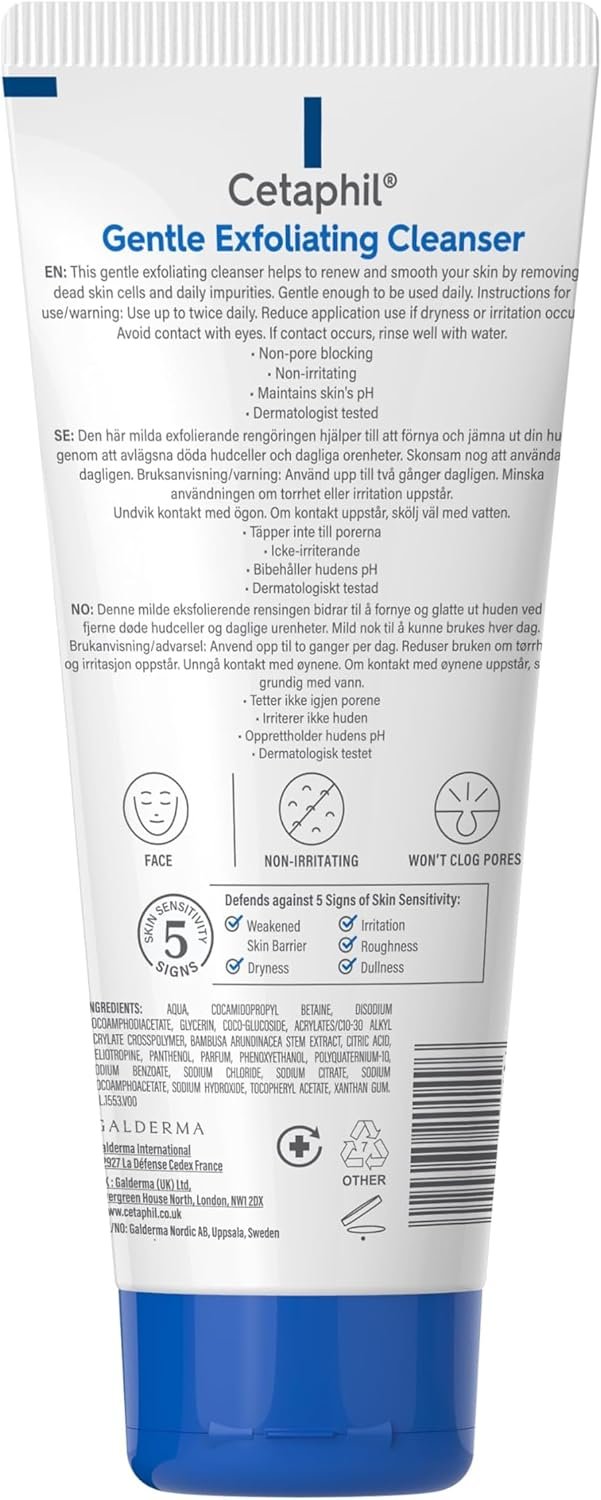 Resume el contenido del producto de manera muy amigable y sobre todo enfocado a los hombres en 250 palabras sobre CETAPHIL Daily Gentle Facial Exfoliating Cleanser for All Skin Types, with Bamboo Microparticles 178ML, editando el texto y subrayando las características clave del árticuloPrecio en Amazon: €14.95 - €10.95 (as of Dec 20, 2025 11:52:50 UTC – Detalles del precio)