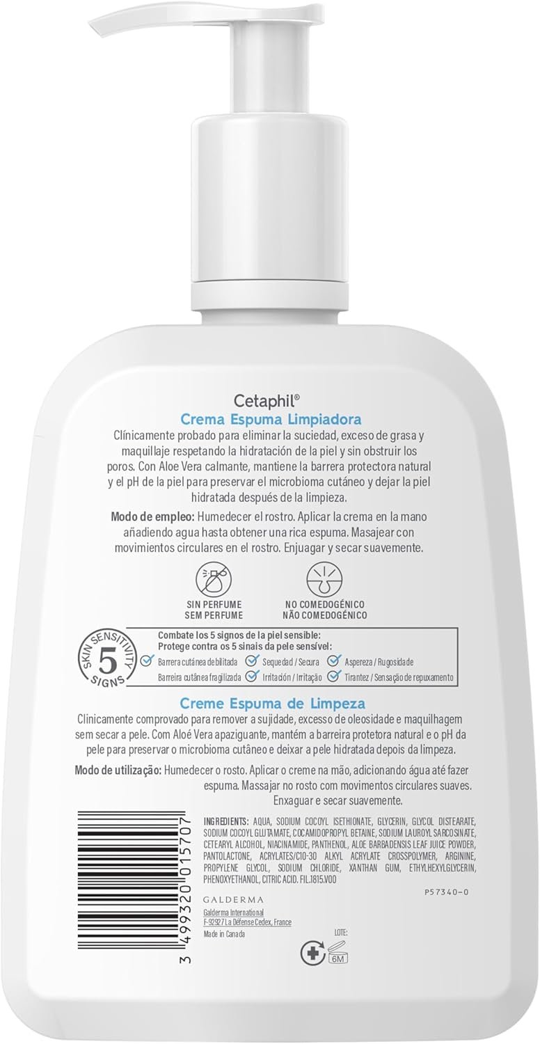 Resume el contenido del producto de manera muy amigable y sobre todo enfocado a los hombres en 250 palabras sobre CETAPHIL Facial Cleansing Foam Cream, Sensitive Skin, Normal to Dry, Removes Dirt and Makeup Preserving the Skin Microbiome 473ML, editando el texto y subrayando las características clave del árticuloPrecio en Amazon: €22.95 - €15.63 (as of Sep 13, 2025 10:02:29 UTC – Detalles del precio)