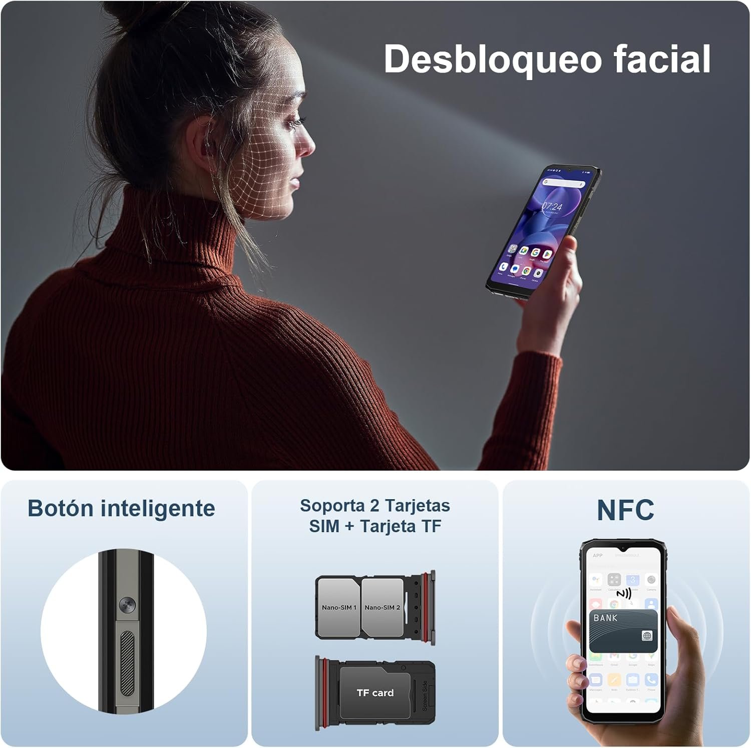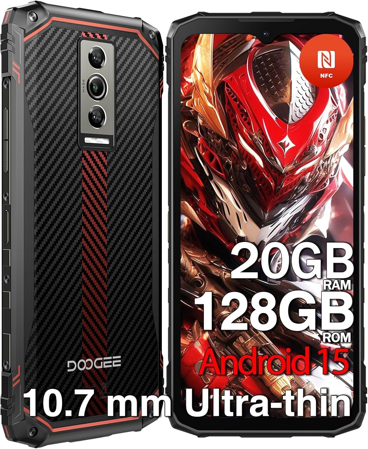Resume el contenido de DOOGEE Blade10 Unbreakable Android 15, 20GB RAM+128GB ROM, 16MP+8MP Camera, 5150mAh, 6.56″ 90Hz Rugerized Mobile, 10.7mm Ultra-thin Body, Dual SIM 4G/Face ID/IP68 P69K/NFC (2025 Version) en español y en sólo 10 palabras