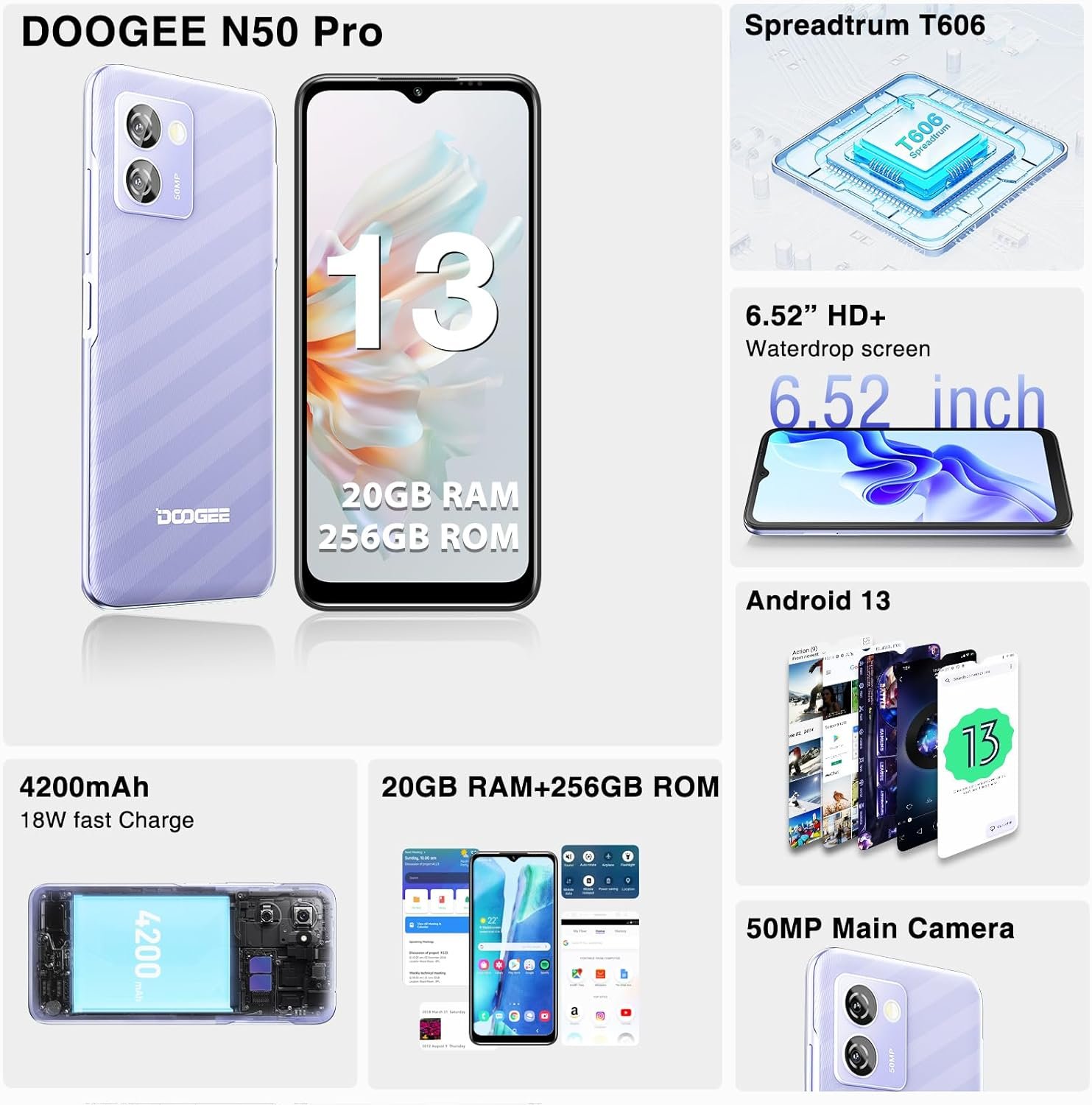 #DOOGEE #N50 #Pro #Mobile #Phone #Libres #20GB #RAM256GB #ROM #Android #50MP #Camera #Inch #1TB #Expandable #4200mAh #18W #Battery #Widevine #Smartphone #OTGGPSFace #IDFootprint