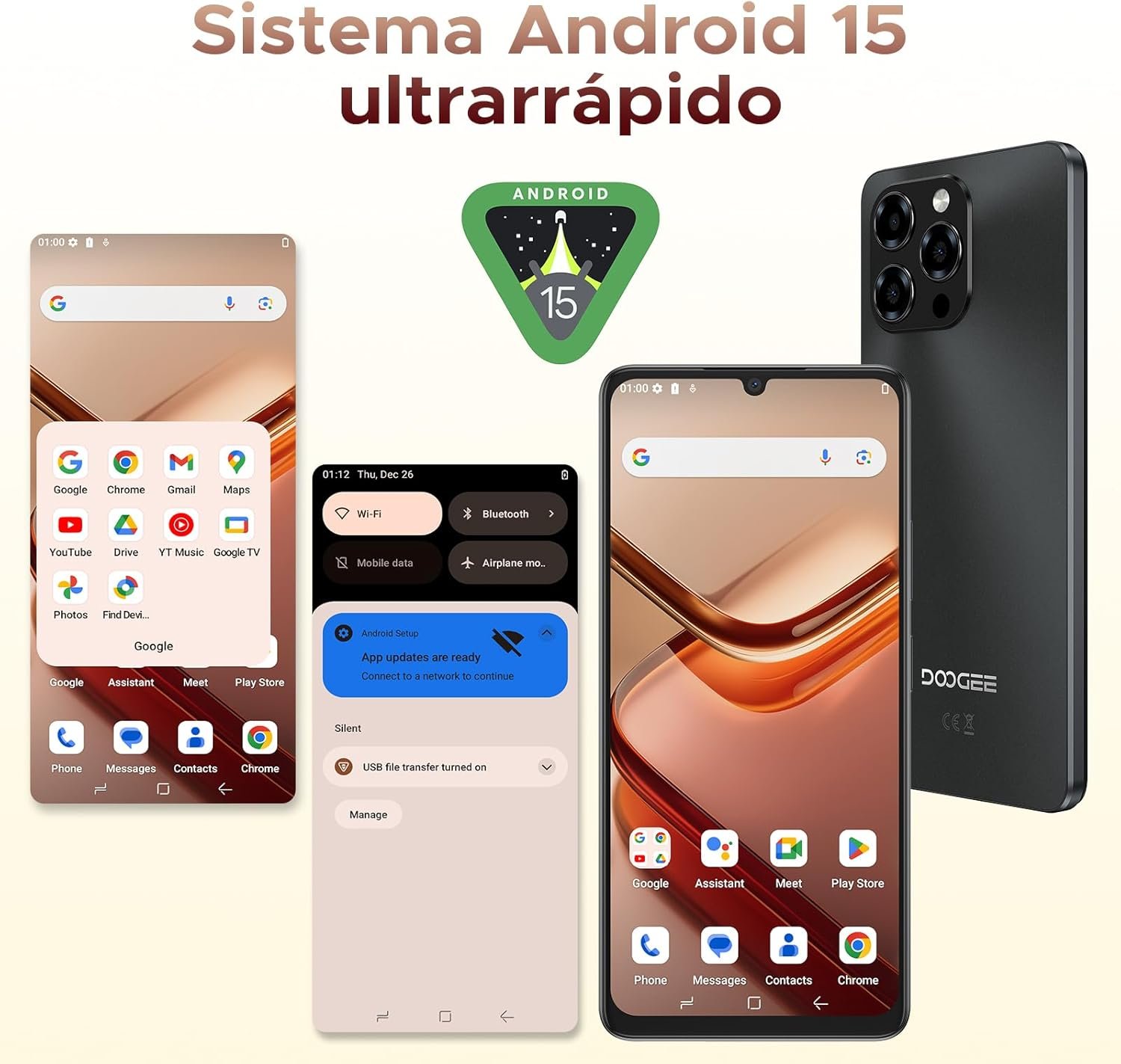 Resume el contenido de DOOGEE Note 58 Mobile Phone Android 15 (2025), 6250mAh Battery, T7250 Octa Core, 32GB+128GB Smartphone, 6.56″ HD+ IPS 90Hz, 16MP+8MP, Body 8.6mm Phone, Face ID/NFC/OTG/GPS/Dual SIM 4G Mobile en español y en sólo 10 palabras