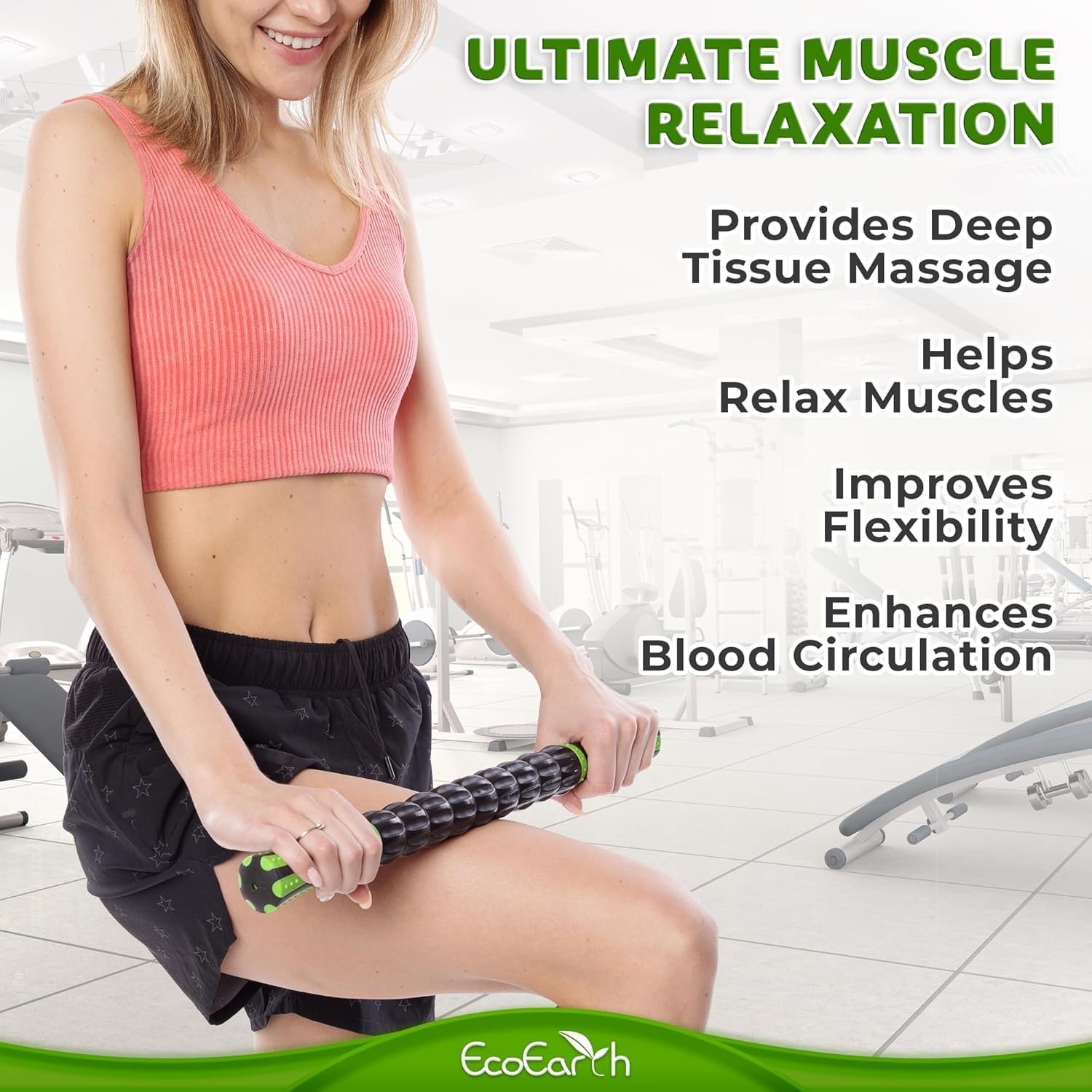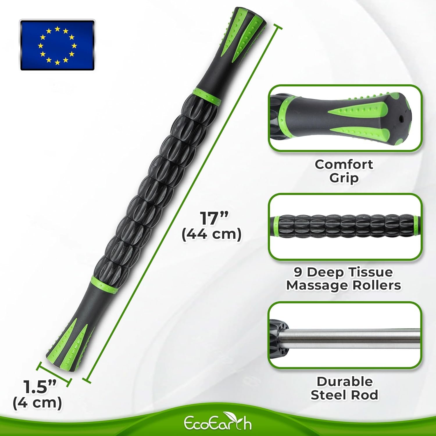 #EcoEarth #Muscle #Roller #43x4cm #Lymphatic #Drainage #Massager #Arms #Shoulders #Legs #Fascia #Massage #Tool #Trigger #Points #Myofascial #Release