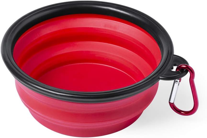 Resume el contenido de Foldable Pet Feeder Bowl for Feeding Dogs and Cats, Collapsible Bowl, Feeding Bowl, Portable Drinking Bowl (Red) en español y en sólo 10 palabras