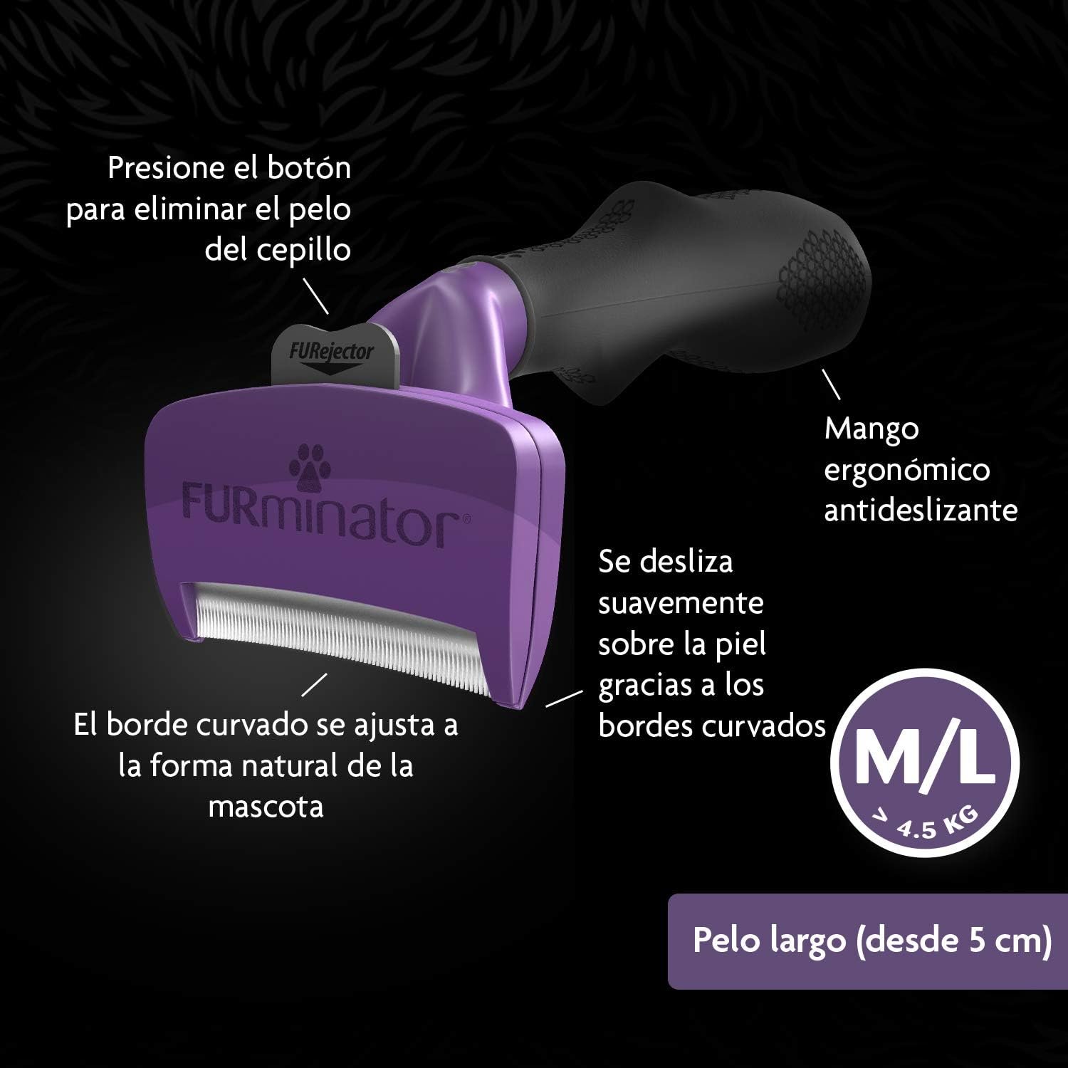 Resume el contenido del producto de manera muy amigable y sobre todo enfocado al cuidado de mascotas y la salud de ellas en 250 palabras sobre FURminator deShedding, Tool for Medium/Large Long Haired Cats, M/L Brush for Removing Loose Hair, Improved Design, editando el texto y subrayando las características clave del articuloPrecio en Amazon: €24.49 (as of Oct 14, 2025 14:17:13 UTC – Detalles del precio)