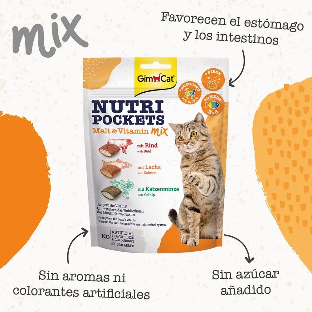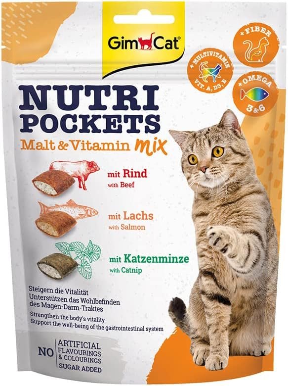 Resume el contenido del producto de manera muy amigable y sobre todo enfocado al cuidado de mascotas y la salud de ellas en 250 palabras sobre GimCat Nutri Pockets Malt & Vitamin Blend – Crispy Cat Snack, with Creamy Filling & Functional Ingredients – 1 Bag (1 x 150g), editando el texto y subrayando las características clave del articuloPrecio en Amazon: €6.42 (as of Sep 06, 2025 14:54:30 UTC – Detalles del precio)
