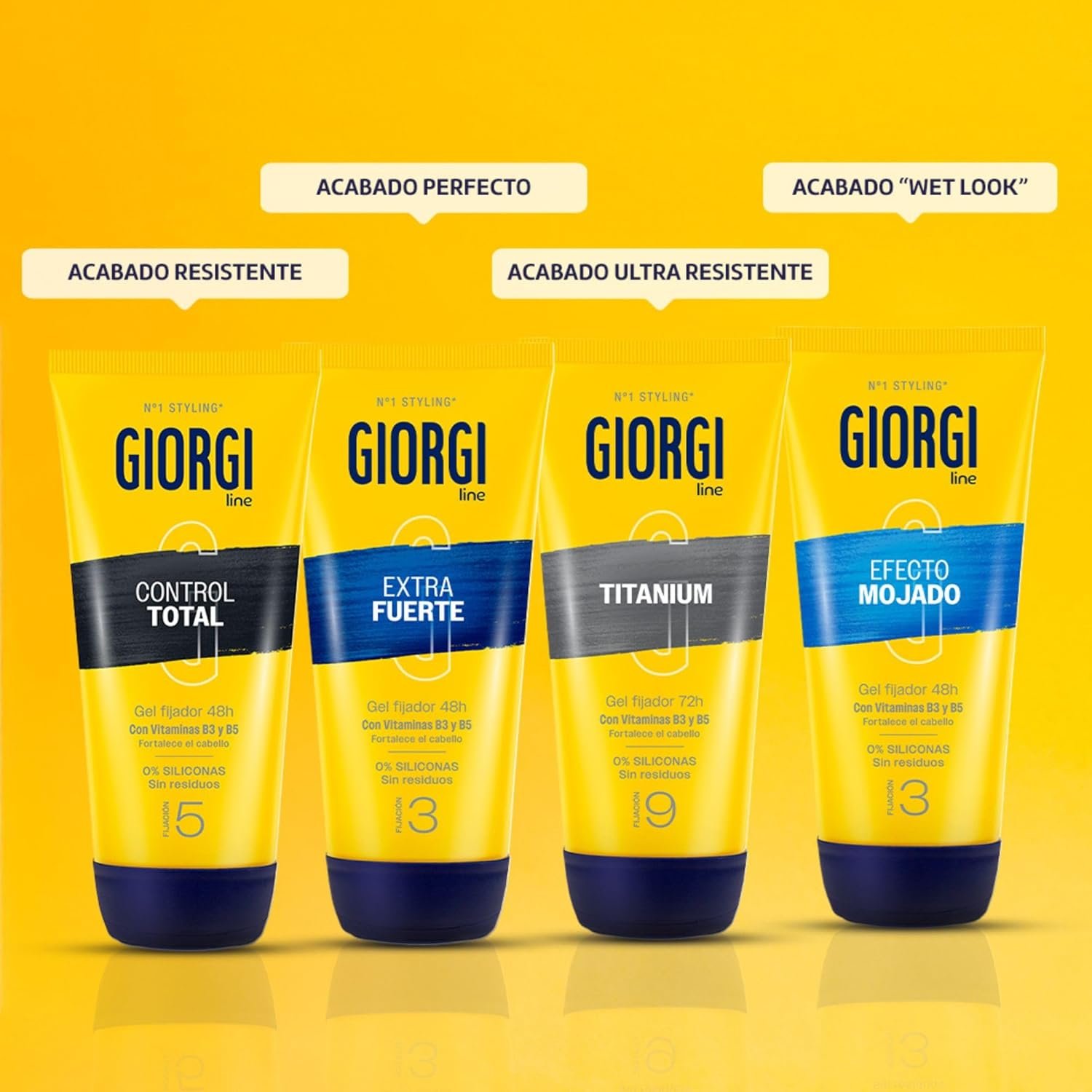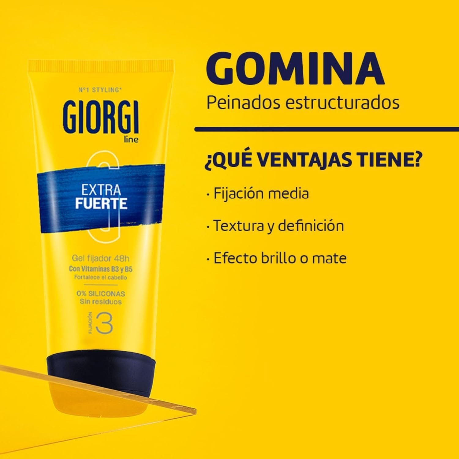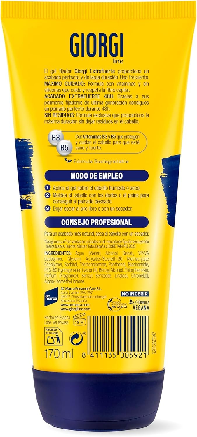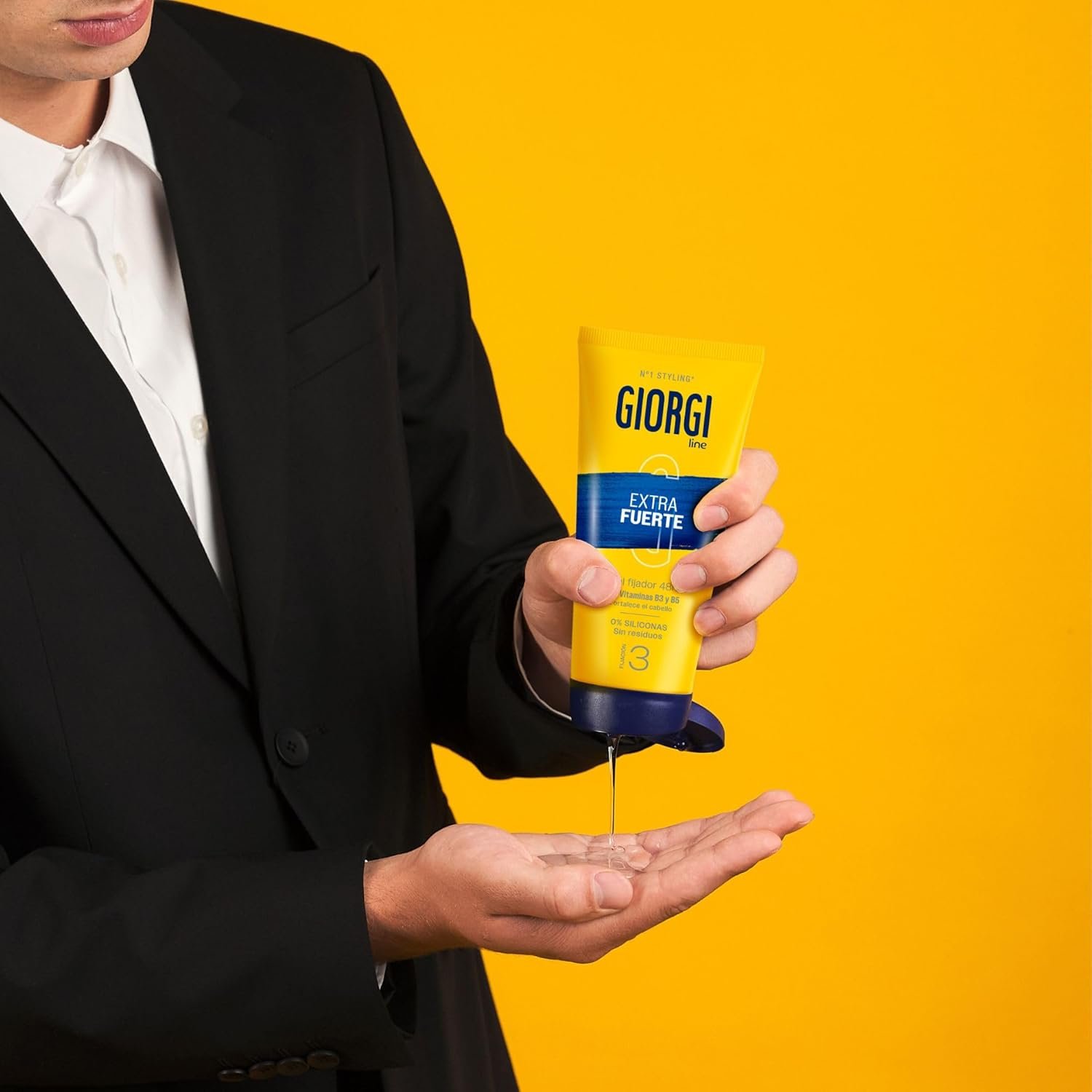 Resume el contenido del producto de manera muy amigable y sobre todo enfocado a los hombres en 250 palabras sobre Giorgi Line – Extra Strong Gummy with Vitamins B3 and B5 – Extra Strong Fixation 3 and 48h Duration – Alcohol or Silicone Free – No Residue and No Grease – Professional Glossy Finish – 170ml, editando el texto y subrayando las características clave del árticuloPrecio en Amazon: €3.25 - €3.03
