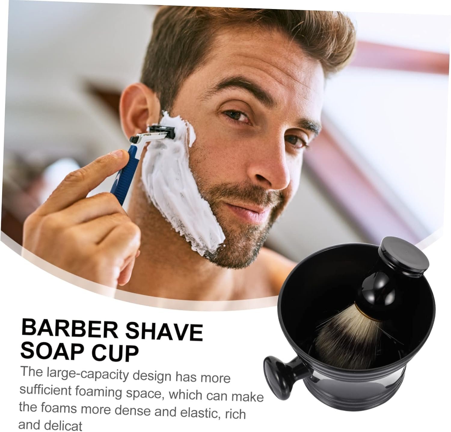 Resume el contenido del producto de manera muy amigable y sobre todo enfocado a los hombres en 250 palabras sobre Happyyami 2piezas Kit De Afeitado Para Hombre Brocha De Afeitar y Cuenco Para Viaje Jabón Afeitar Cuidado Personal, editando el texto y subrayando las características clave del árticuloPrecio en Amazon: €15.89