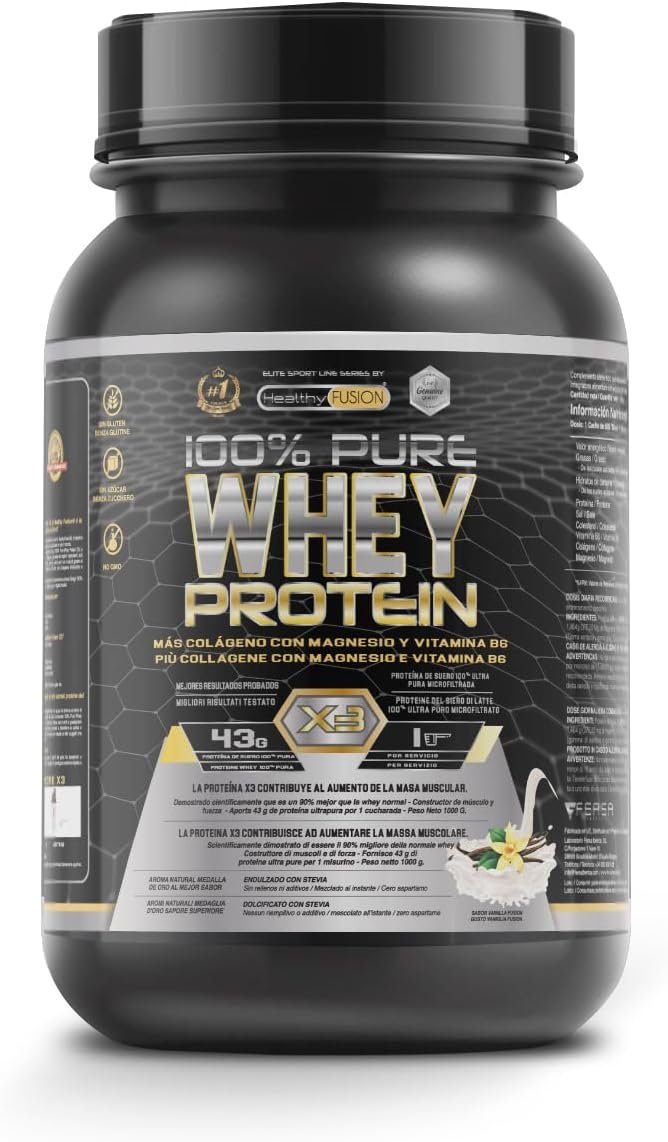 Resume el contenido del producto de manera muy amigable y sobre todo enfocado al fitness y la salud en 250 palabras sobre Healthy Fusion Whey Protein | Pure Whey Protein with Collagen + Magnesium | Tone & Increase Muscle Mass | Improve Your Workouts | 1000g Protein (Vanilla), editando el texto y subrayando las características clave del articuloPrecio en Amazon: €29.90