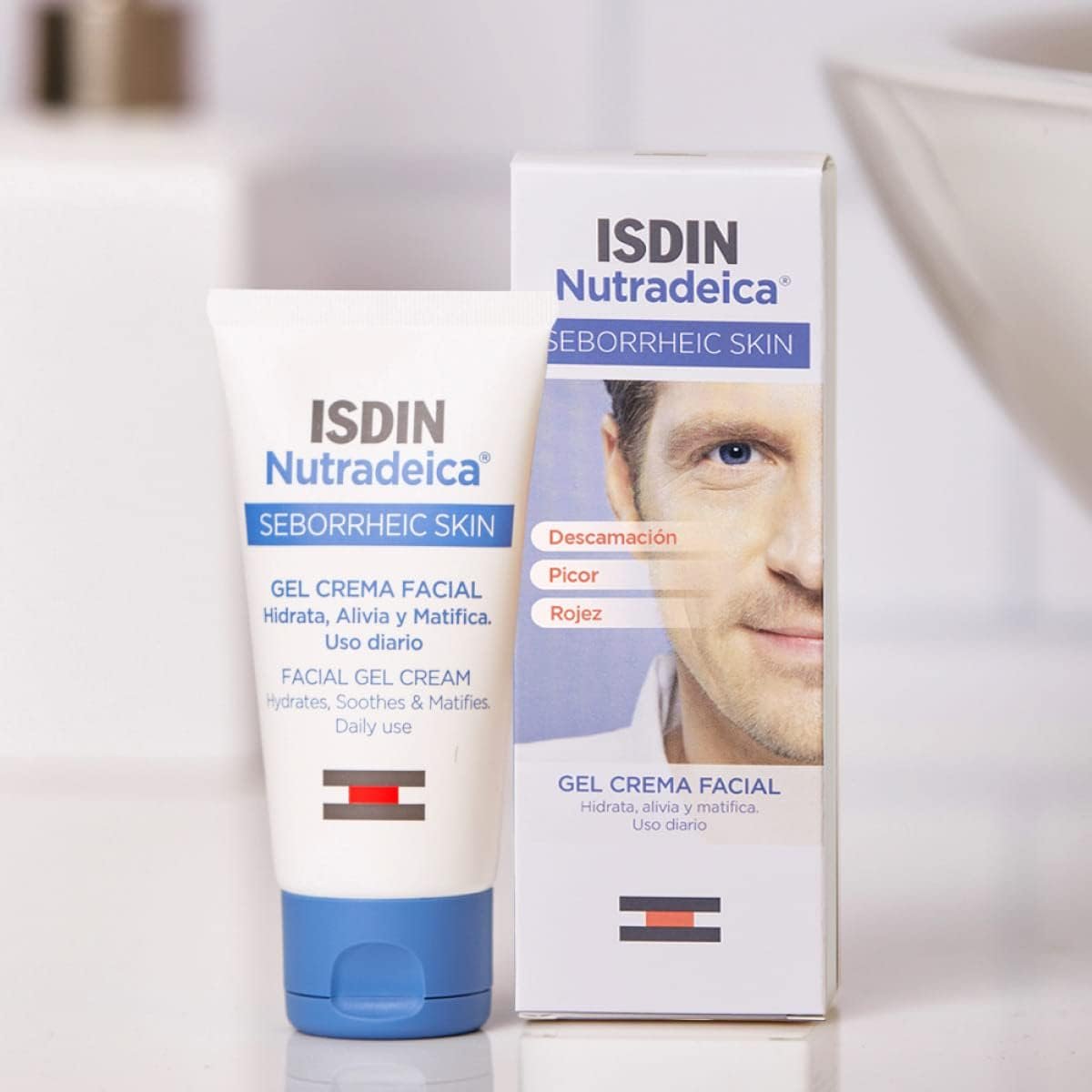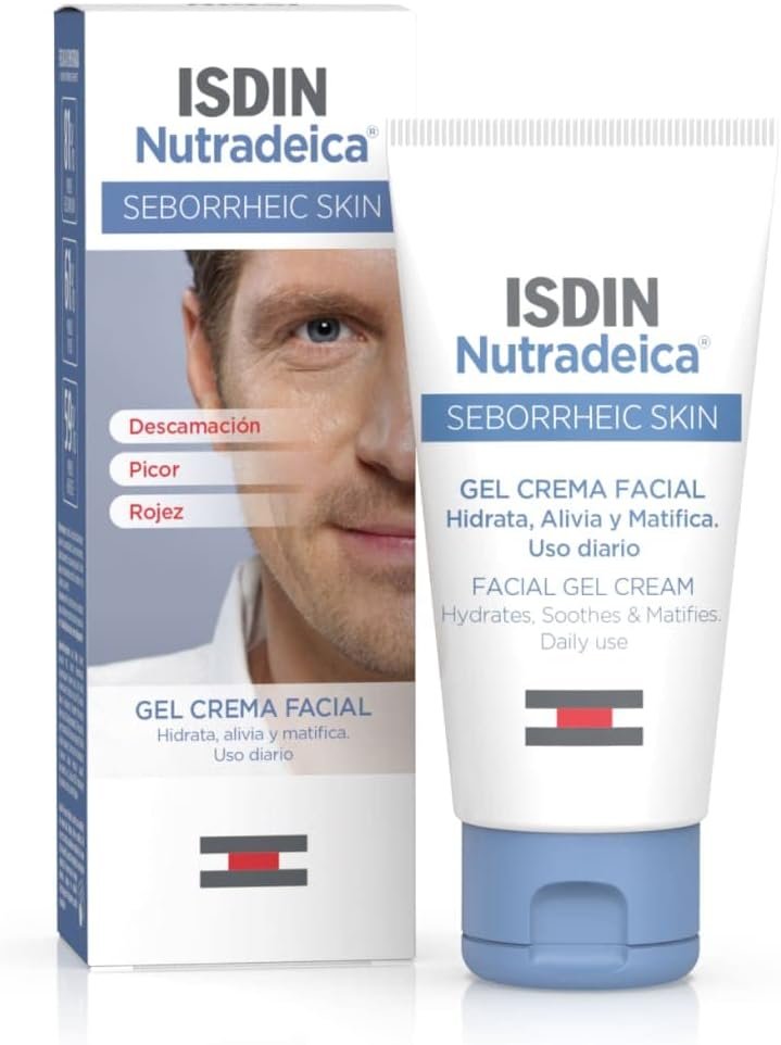 Resume el contenido del producto de manera muy amigable y sobre todo enfocado a los hombres en 250 palabras sobre ISDIN Facial Gel-Cream Indicated for Treatment of Excess Sebum, Flaking, Itching and Erythema of Facial Seborrheic Skin, 50 ml (Pack of 1), editando el texto y subrayando las características clave del árticuloPrecio en Amazon: €17.55 - €14.90