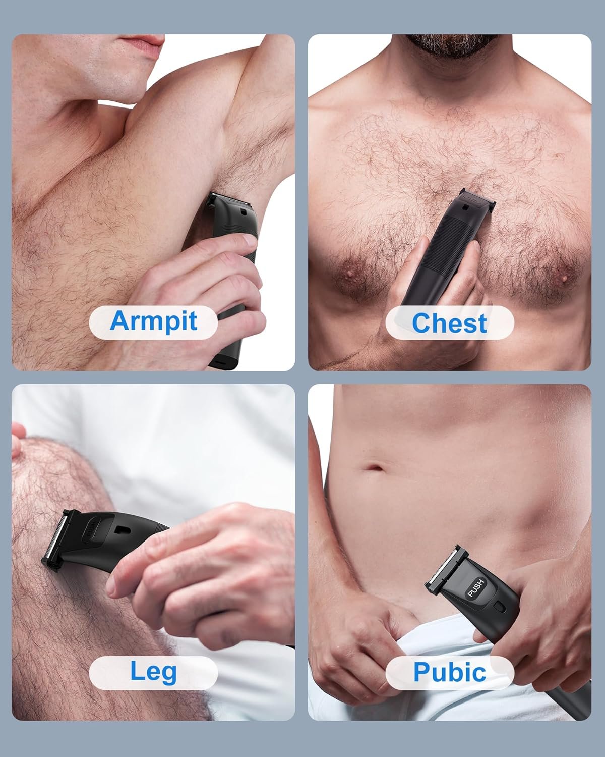 Resume el contenido del producto de manera muy amigable y sobre todo enfocado a los hombres en 250 palabras sobre Male Body Shaver, Electric Male Body Epilator Machine 100% Waterproof, LED Display, LED Lighting and Rechargeable Type C, with 4 Guide Combs, for Beard, Armpits, Chest, Legs, editando el texto y subrayando las características clave del árticuloPrecio en Amazon: €19.99 (as of Feb 19, 2026 11:18:10 UTC – Detalles del precio)