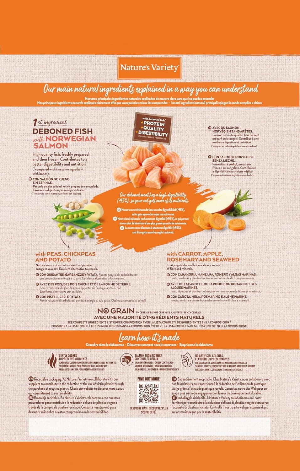 Resume el contenido del producto de manera muy amigable y sobre todo enfocado al cuidado de mascotas y la salud de ellas en 250 palabras sobre Nature’s Variety No Grain Sterilized Cat Food with Norwegian Salmon – 3 kg, editando el texto y subrayando las características clave del articuloPrecio en Amazon: €29.95 - €27.95 (as of Feb 22, 2026 15:45:34 UTC – Detalles del precio)