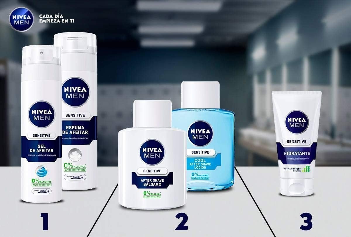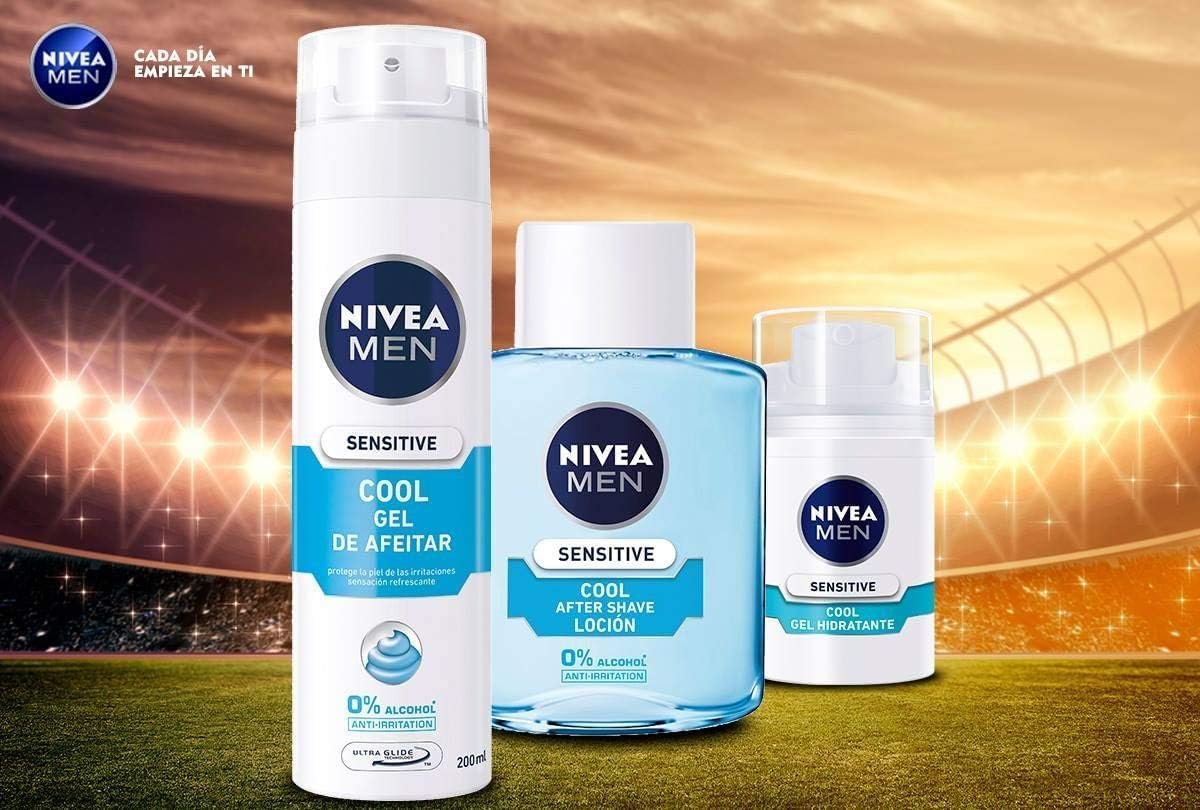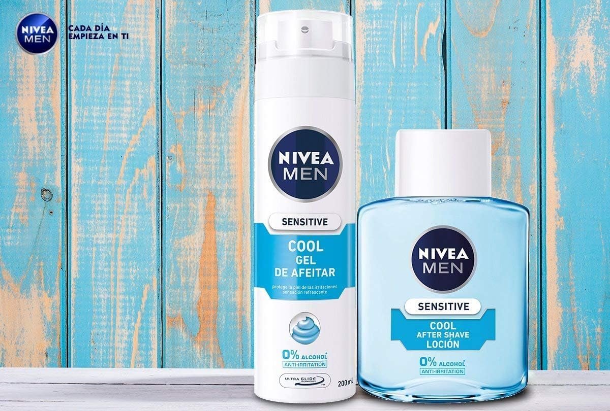 Resume el contenido de NIVEA MEN Sensitive Cool After Shave Lotion (1 x 100ml) with 0% Alcohol to Soothe Irritation, Soothing Lotion for Sensitive Skin Care en español y en sólo 10 palabras
