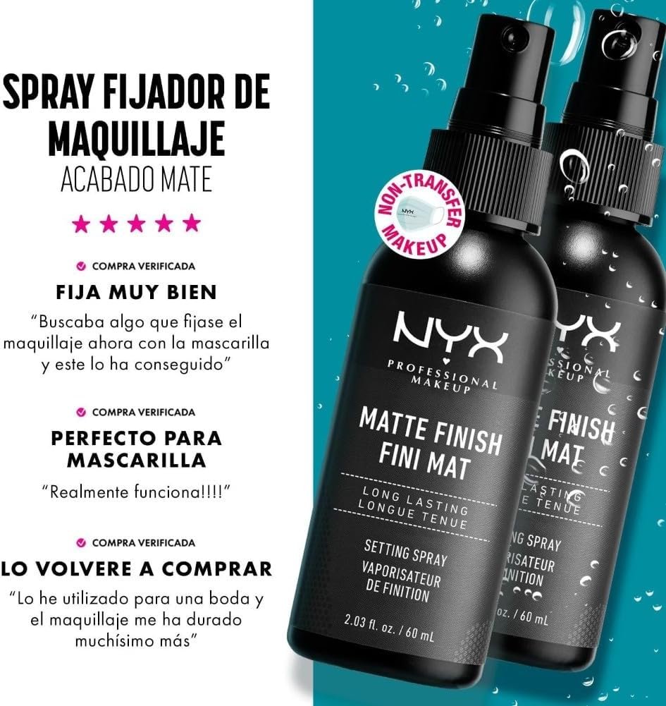 Resume el contenido del producto de manera muy amigable y sobre todo enfocado a las mujeres en 250 palabras sobre NYX Professional Makeup Makeup Setting Spray, Long Lasting, Lightweight, Vegan Formula, Matte Finish, 60 ml, editando el texto y subrayando las características clave del árticuloPrecio en Amazon: €9.50 - €6.92 (as of Jan 10, 2026 05:31:30 UTC – Detalles del precio)