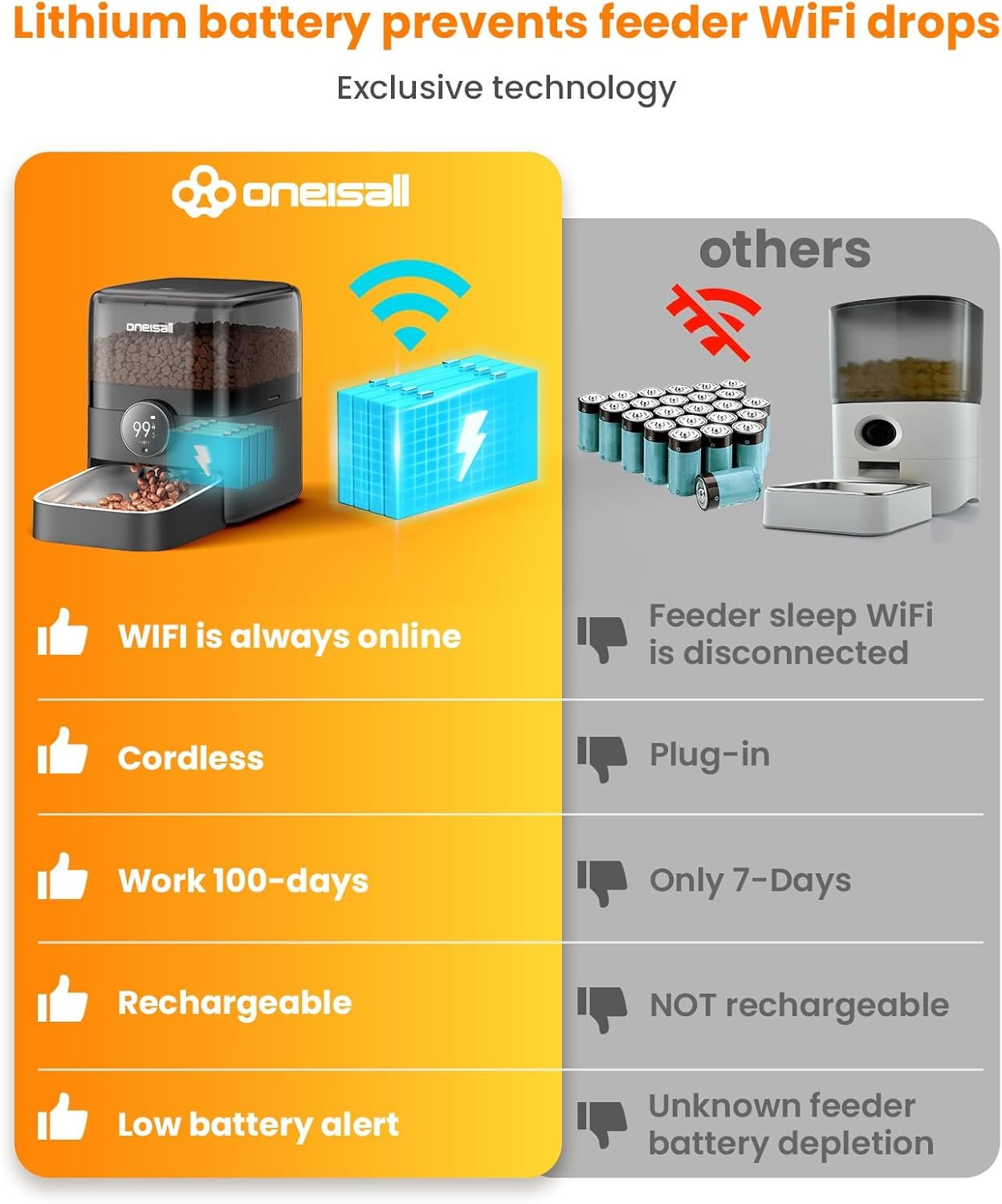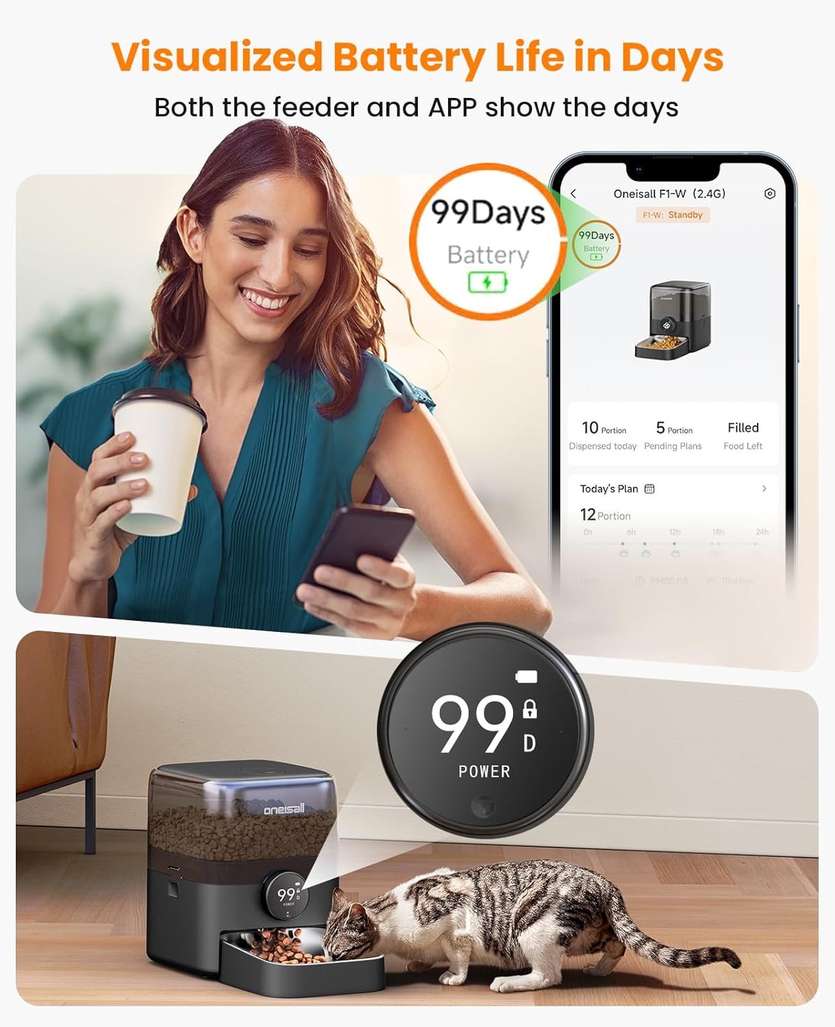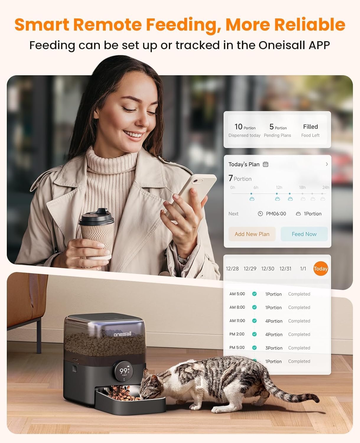 Resume el contenido del producto de manera muy amigable y sobre todo enfocado al cuidado de mascotas y la salud de ellas en 250 palabras sobre oneisall 3L Wireless Automatic Cat Feeder with App Control, WiFi Automatic Cat and Dog Feeder with Timer, Automatic Pet Feeder with, editando el texto y subrayando las características clave del articuloPrecio en Amazon: €69.99 - €56.51 (as of Oct 23, 2025 14:41:28 UTC – Detalles del precio)