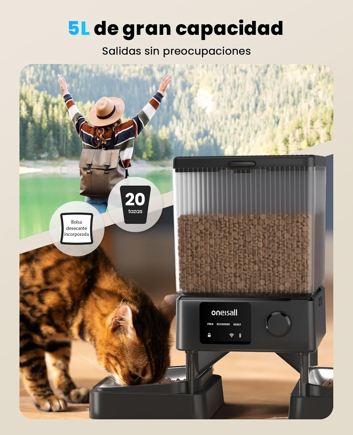 #oneisall #Automatic #Cat #Feeder #Bowls #5G2.4G #WiFi #Smart #Food #Machine #CatsDogs #Easy #Operation #App #Control #Stainless #Steel #Bowls #Voice #Recorder