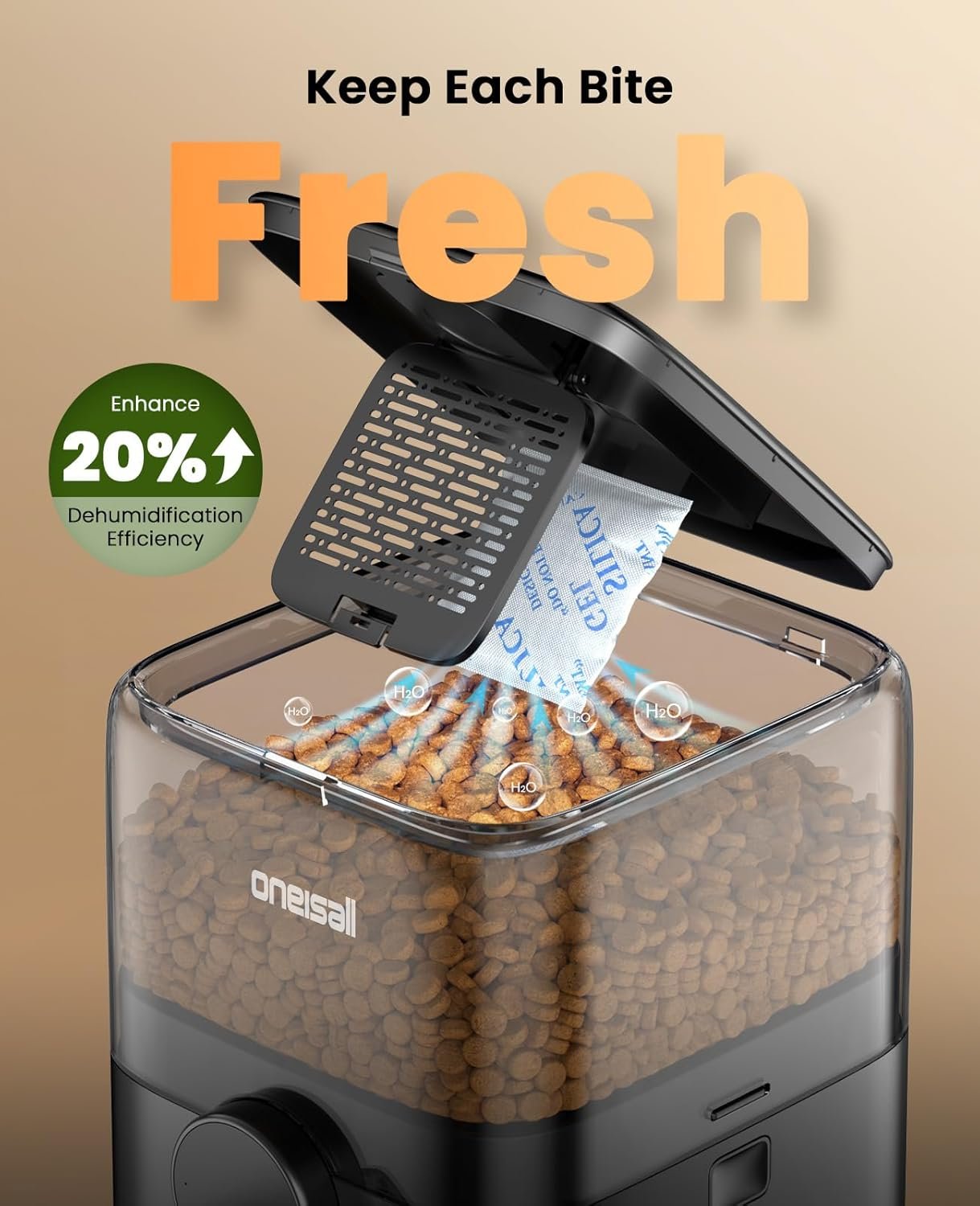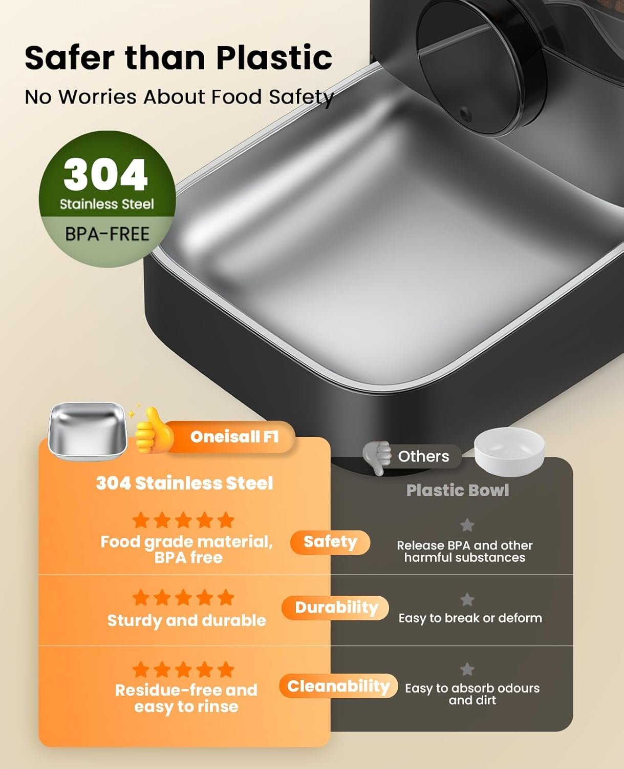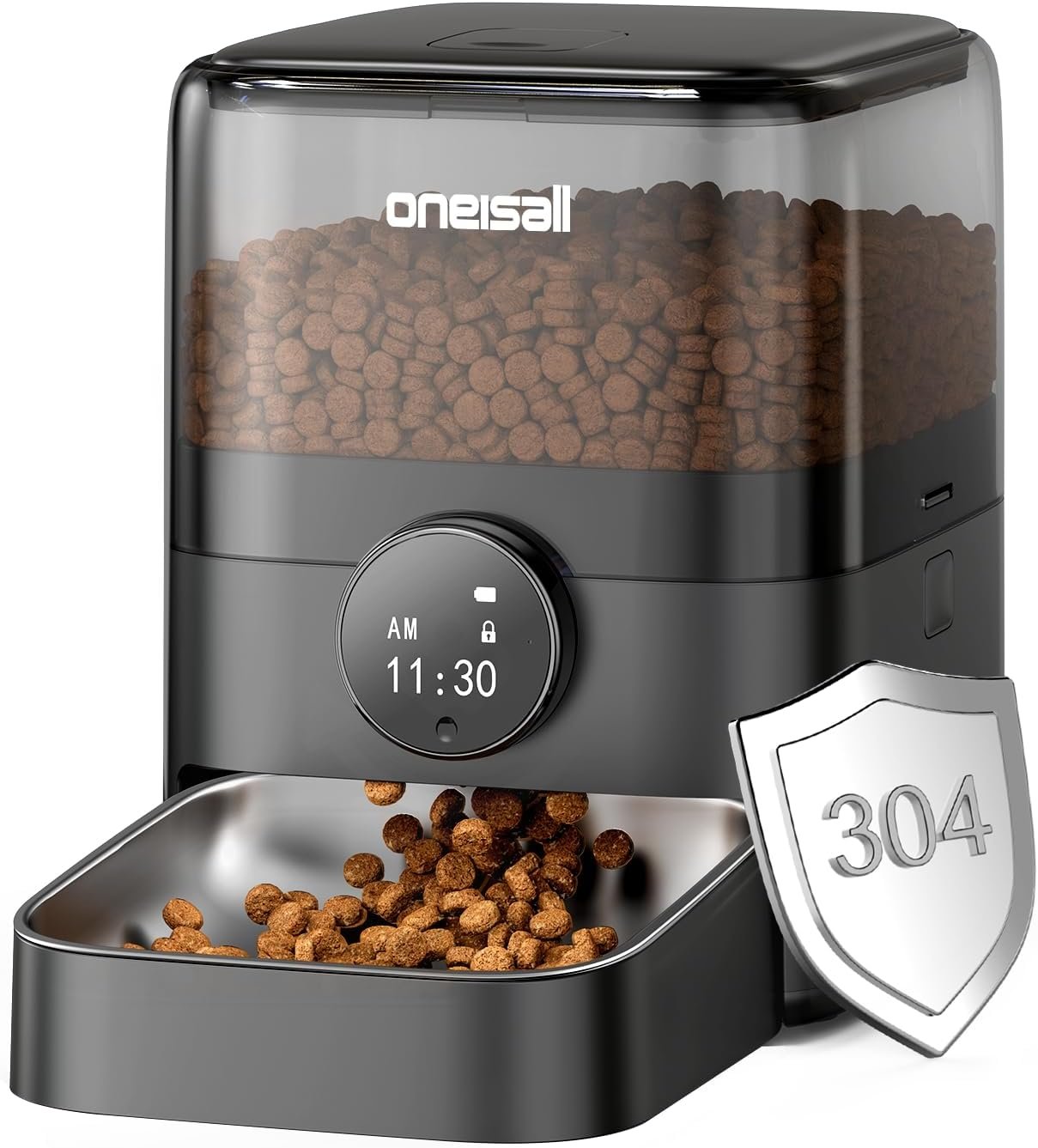 Resume el contenido del producto de manera muy amigable y sobre todo enfocado al cuidado de mascotas y la salud de ellas en 250 palabras sobre oneisall Automatic Cat Feeder 3L with 304 Stainless Steel Bowl, 1-6 Meals a Day, Dry Food Dispenser for Cats/Dogs, with Programmable Timer, editando el texto y subrayando las características clave del articuloPrecio en Amazon: €49.99 - €39.99 (as of Sep 01, 2025 14:26:18 UTC – Detalles del precio)