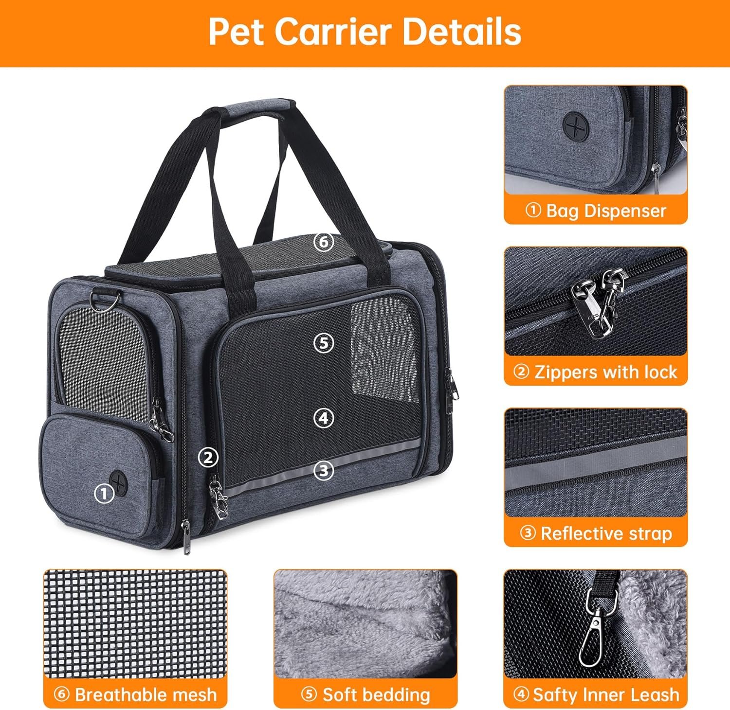 #Pet #Travel #Carrier #Airplane #Approved #Seat #TSA #Airline #Approved #SoftSided #Carrier #Bag #Cats #Dogs #Inches #Grey