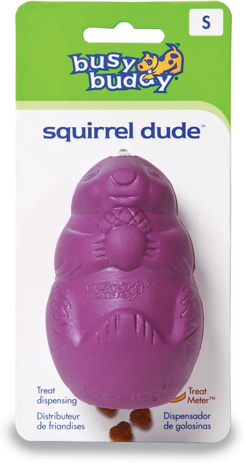 Resume el contenido del producto de manera muy amigable y sobre todo enfocado al cuidado de mascotas y la salud de ellas en 250 palabras sobre PetSafe Premier Squirrel Dude – Mental Stimulation Tough Rubber Treat Dispenser Toy – Dishwasher Safe – Size S, editando el texto y subrayando las características clave del articuloPrecio en Amazon: €14.99 (as of Apr 28, 2026 14:21:47 UTC – Detalles del precio)