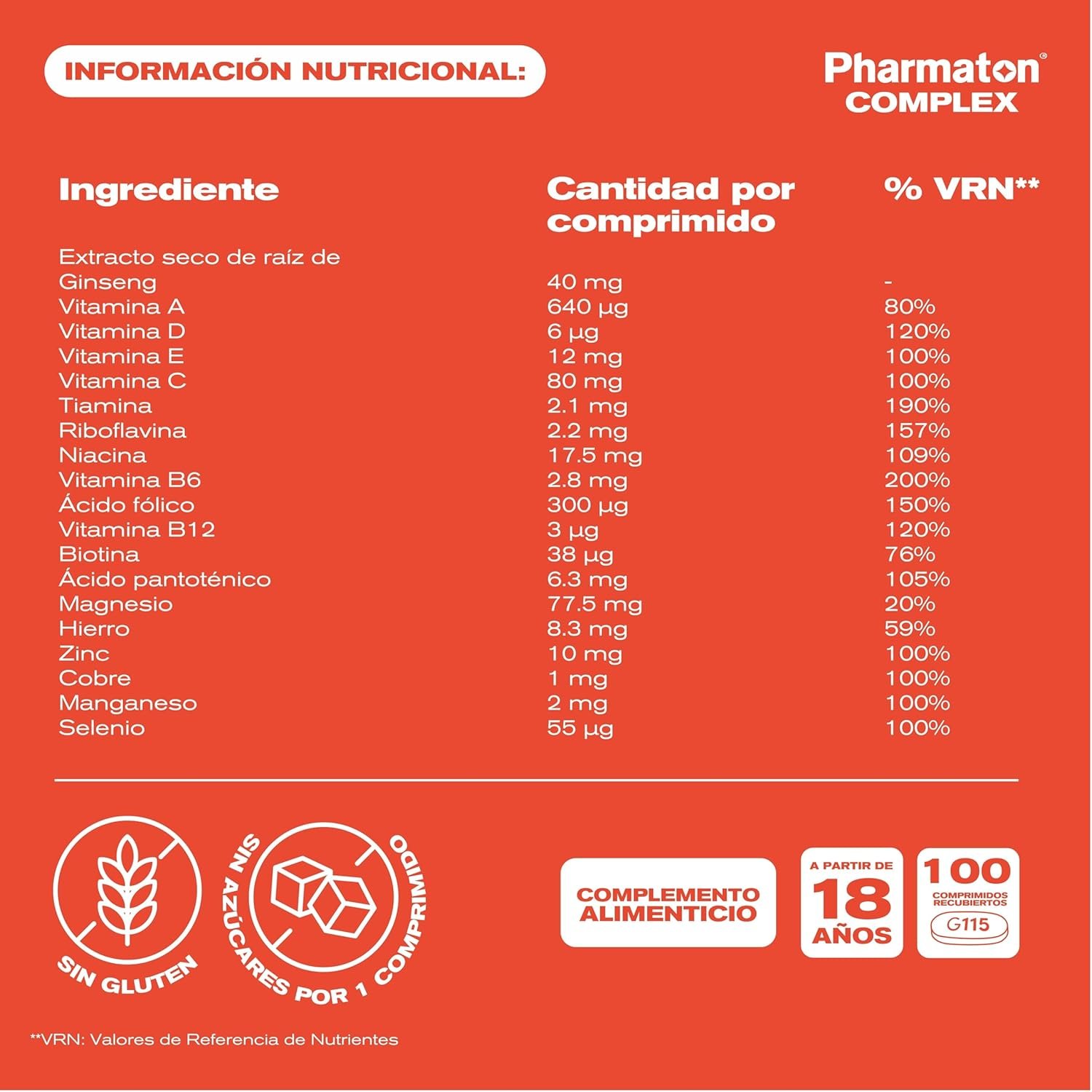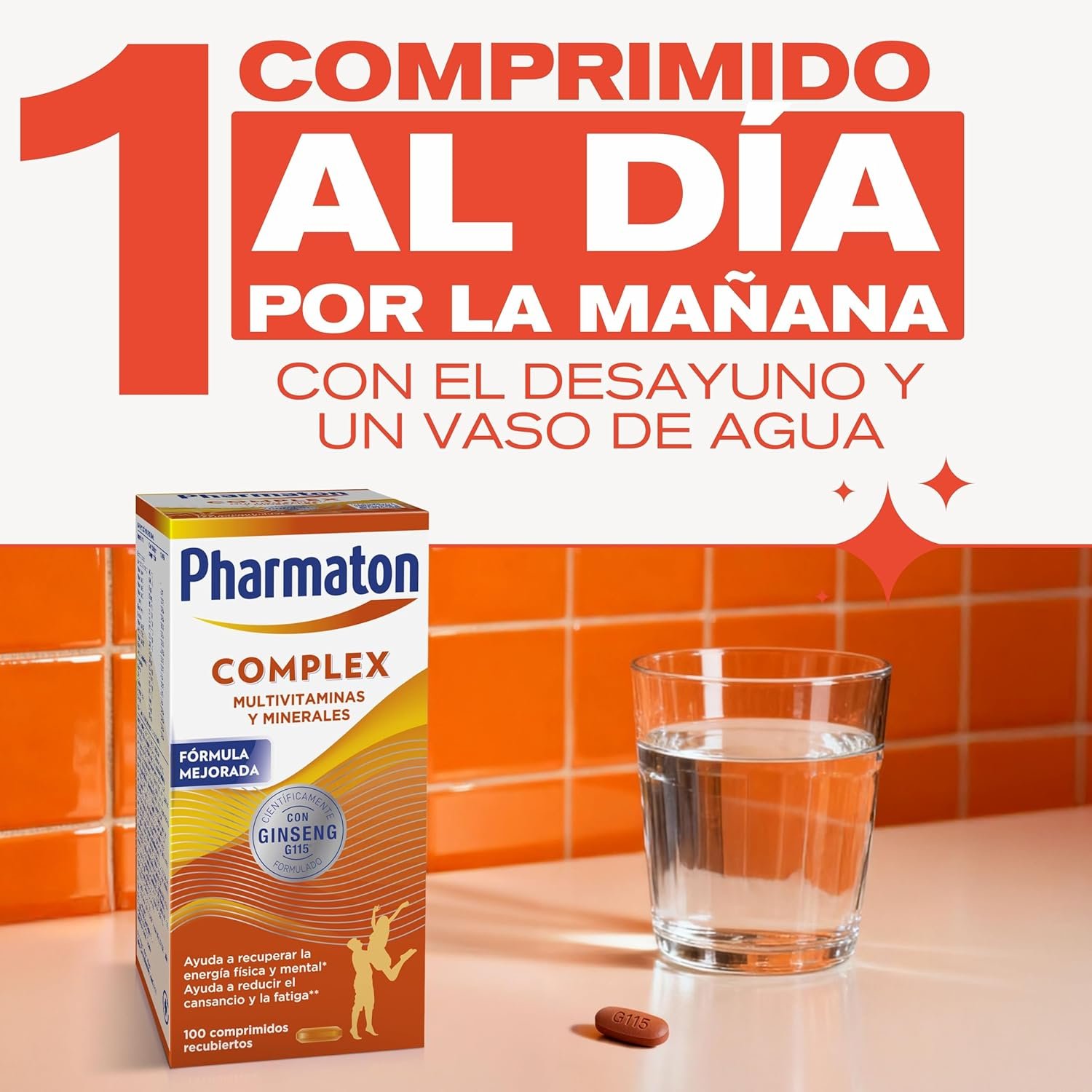 Resume el contenido de Pharmaton Complex – Multivitamin with Ginseng G115-200 Tablets – Physical & Mental Energy – Vitamins for Fatigue en español y en sólo 10 palabras