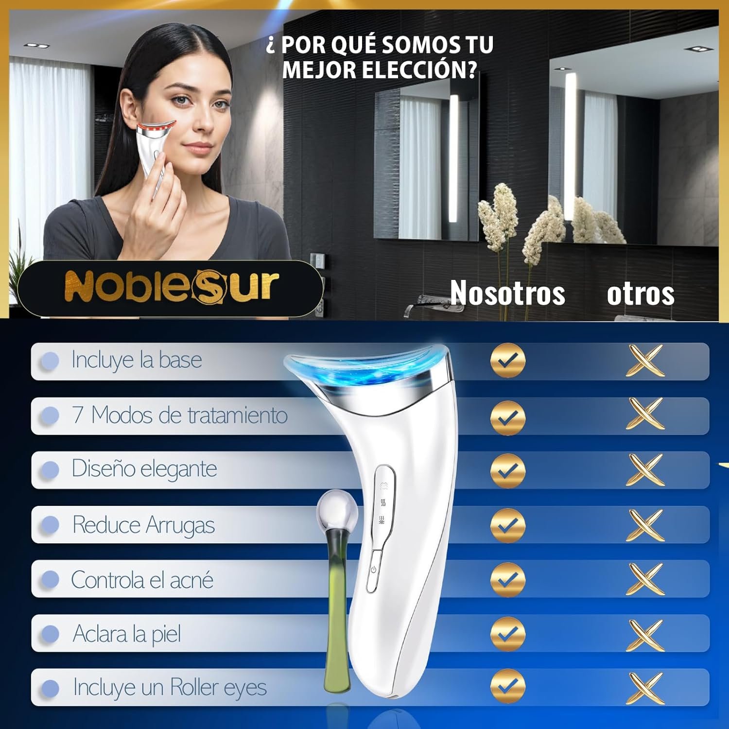 Resume el contenido del producto de manera muy amigable y sobre todo enfocado a las mujeres en 250 palabras sobre Premium Facial Massager 7 Modes + Ice Roller + Carrying Bag | Facial Radio Frequency | Temperature 45ºC | Anti-Ageing, Lifting and Firming of Flaccid Skin, editando el texto y subrayando las características clave del árticuloPrecio en Amazon: €36.54 - €19.99 (as of Nov 25, 2025 05:11:33 UTC – Detalles del precio)