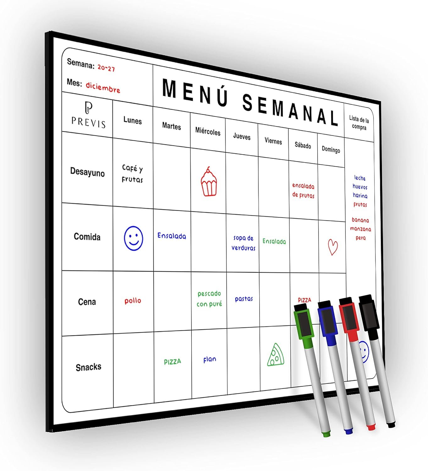 Resume el contenido del producto de manera muy amigable y sobre todo enfocado al fitness y la salud en 250 palabras sobre Previs Magnetic Weekly Menu A4 – Magnetic Kitchen Chalkboard – Weekly Calendar Fridge Magnet, editando el texto y subrayando las características clave del articuloPrecio en Amazon: €11.99 (as of Nov 15, 2025 16:33:44 UTC – Detalles del precio)