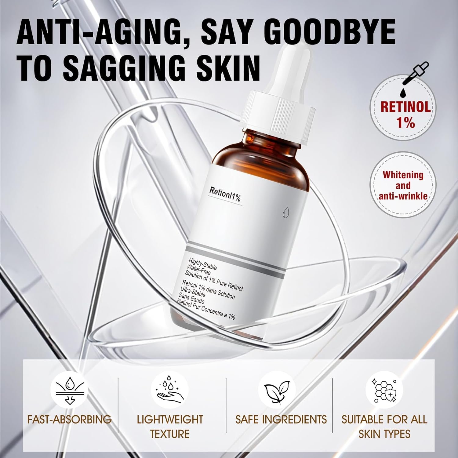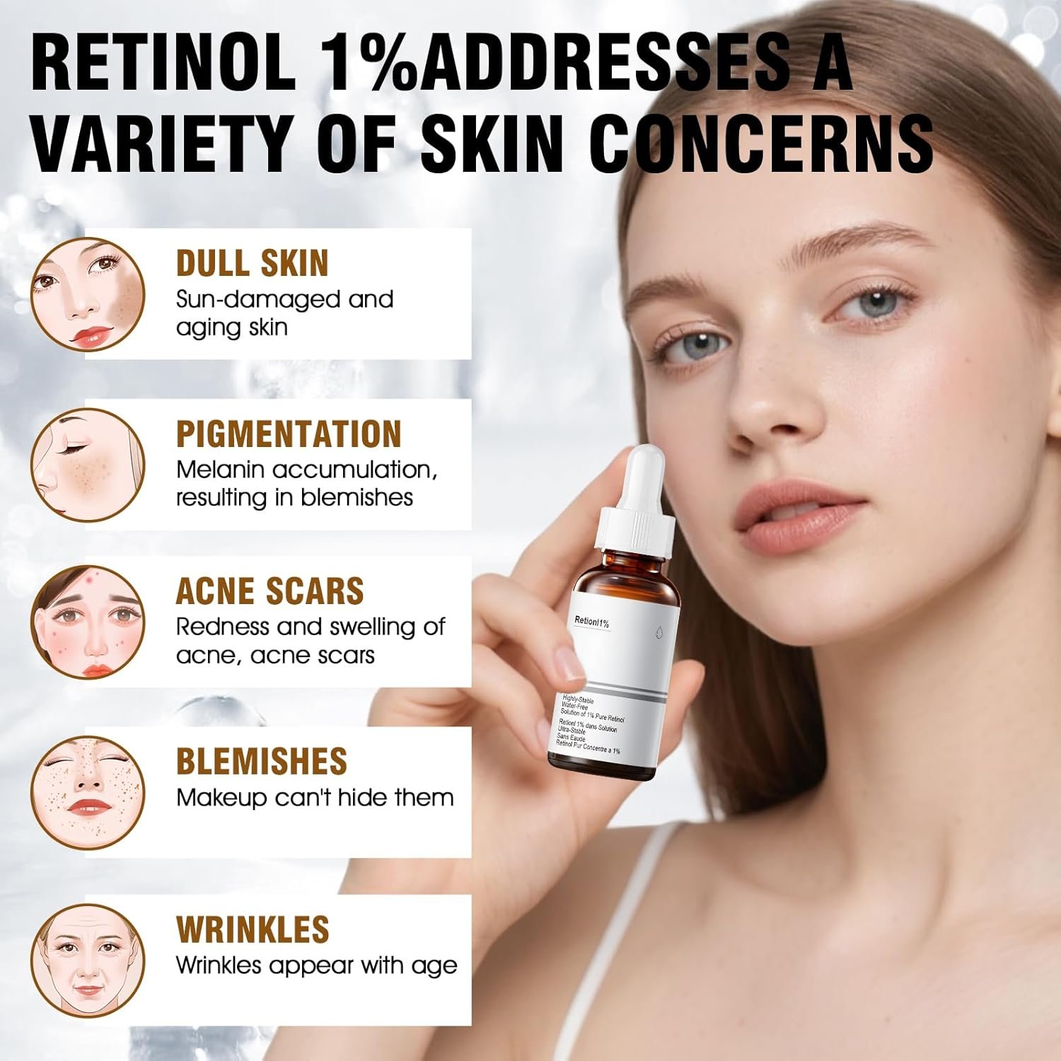 Resume el contenido de Retinol 1%, Retinol Serum, Women’s Facial Serum, Pure Retinol for Face, High Potency Retinol Serum for Signs of Aging, Reduces Fine Lines and Signs, 30ml en español y en sólo 10 palabras