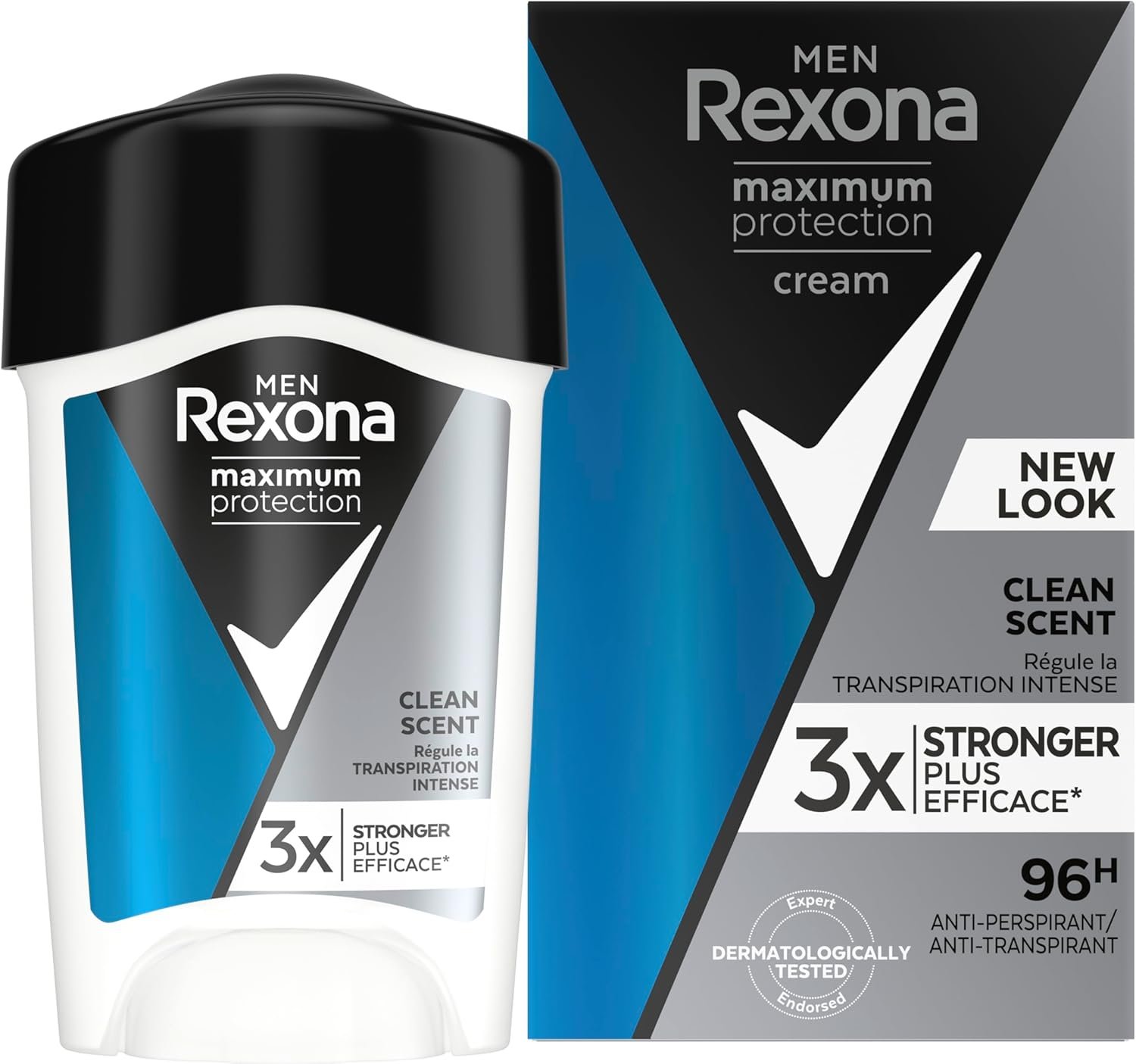 Resume el contenido del producto de manera muy amigable y sobre todo enfocado a los hombres en 250 palabras sobre Rexona Maximum Protection Clean Scent Antiperspirant Cream Deodorant for Men, 45 ml, editando el texto y subrayando las características clave del árticuloPrecio en Amazon: €5.15 - €4.50 (as of Oct 28, 2025 11:05:38 UTC – Detalles del precio)
