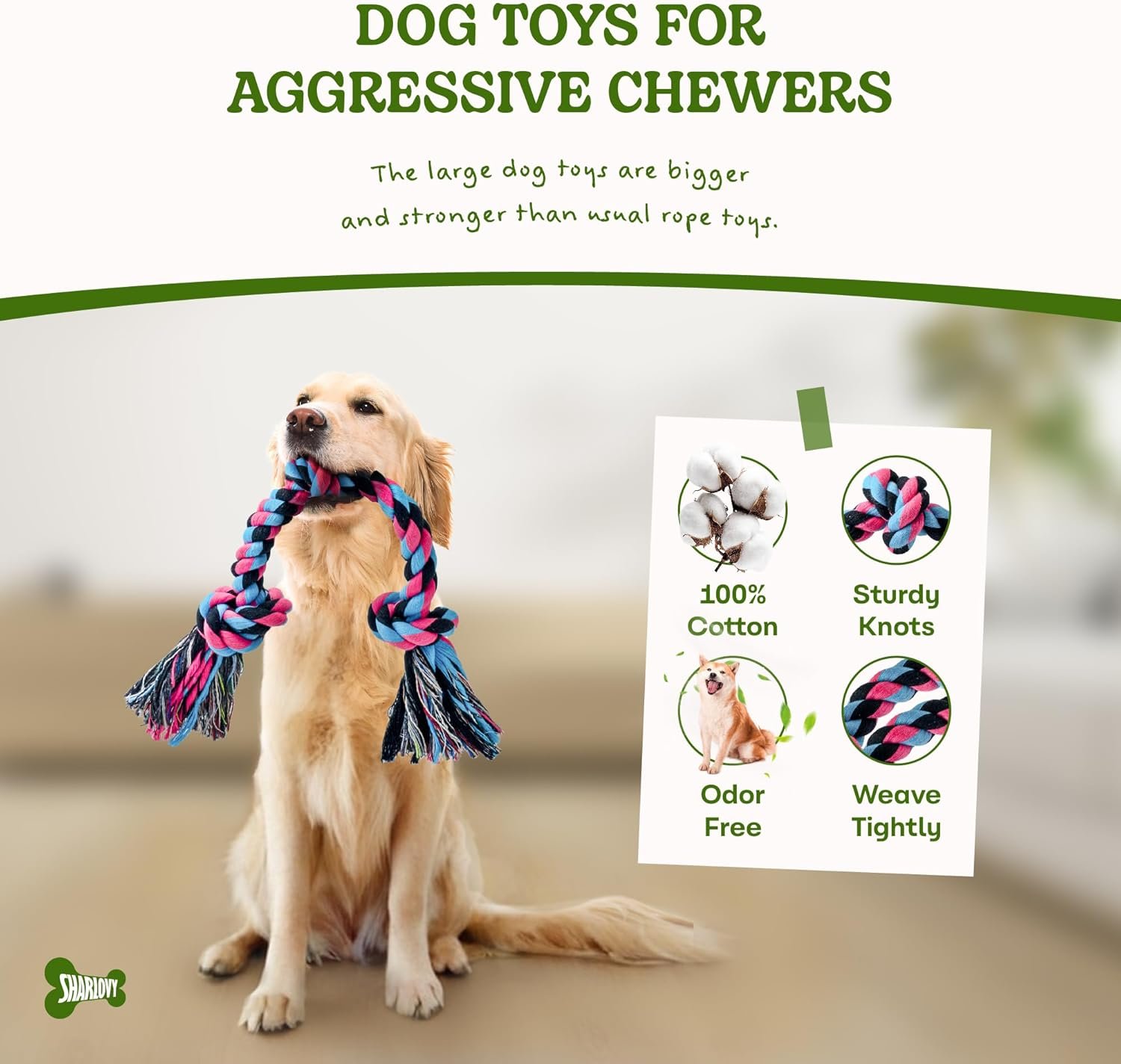 Resume el contenido del producto de manera muy amigable y sobre todo enfocado al cuidado de mascotas y la salud de ellas en 250 palabras sobre Rope Toy for Large Dogs, Tough Chew Toys for Aggressive Chewers, Indestructible Durable Cotton Rope Toys for Breed Teeth Cleaning, editando el texto y subrayando las características clave del articuloPrecio en Amazon: €12.98 (as of Apr 26, 2026 14:16:11 UTC – Detalles del precio)