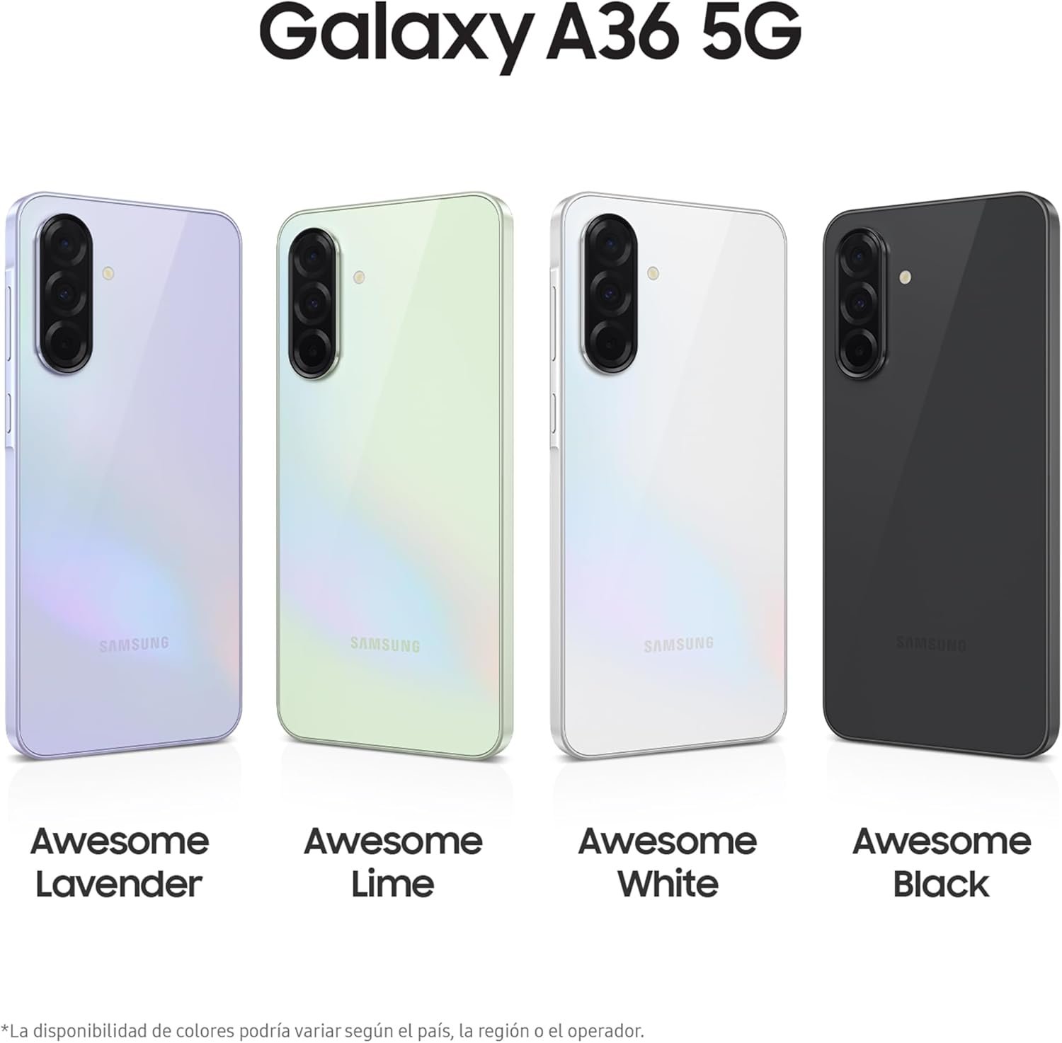 Resume el contenido de Samsung Galaxy A36 5G 256GB Mobile Phone, 6GB RAM, 50MP Camera, Black, Manufacturer Warranty 3 Years + 1 Year Extra en español y en sólo 10 palabras