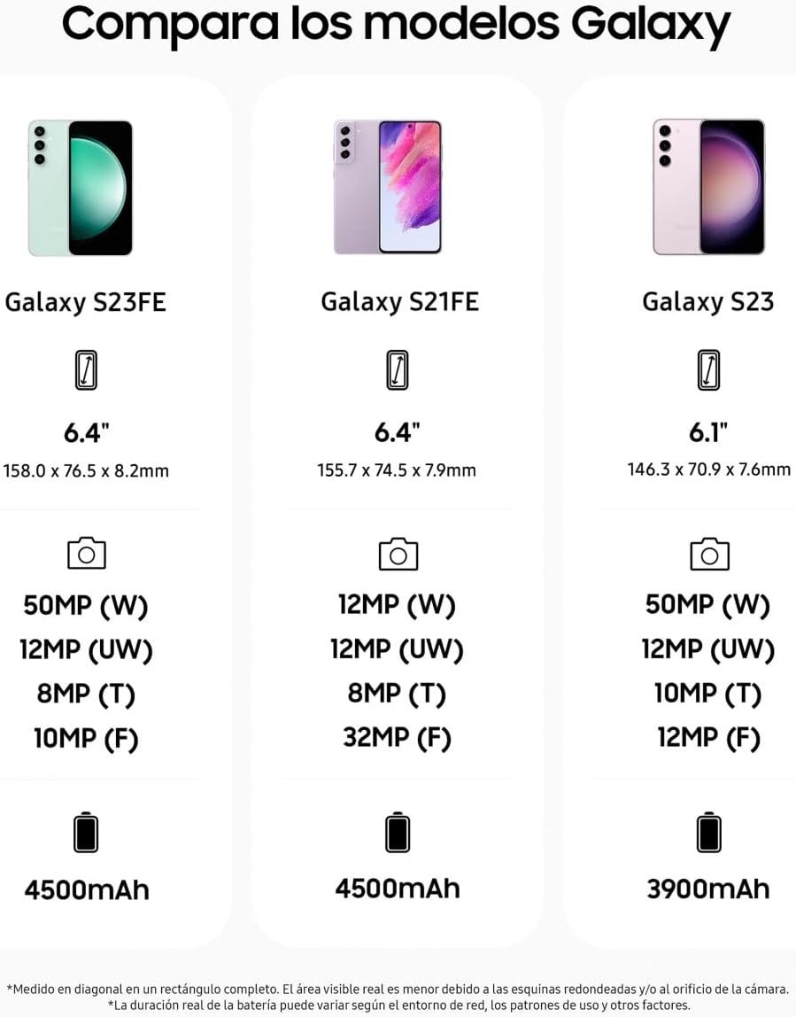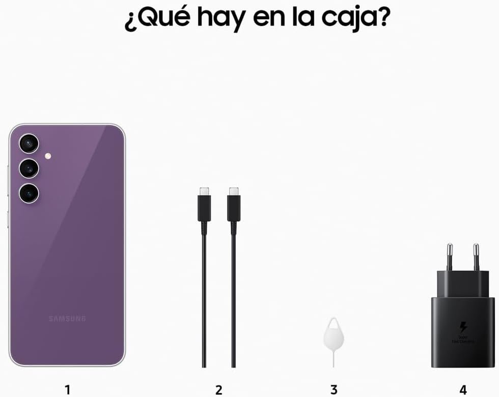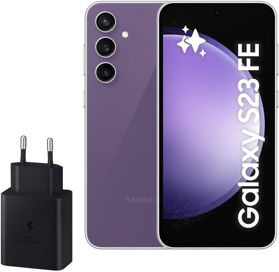 Resume el contenido de Samsung Galaxy S23 FE, 256GB, 5G AI Mobile Phone, Android Smartphone, Purple (Spanish Version) en español y en sólo 10 palabras