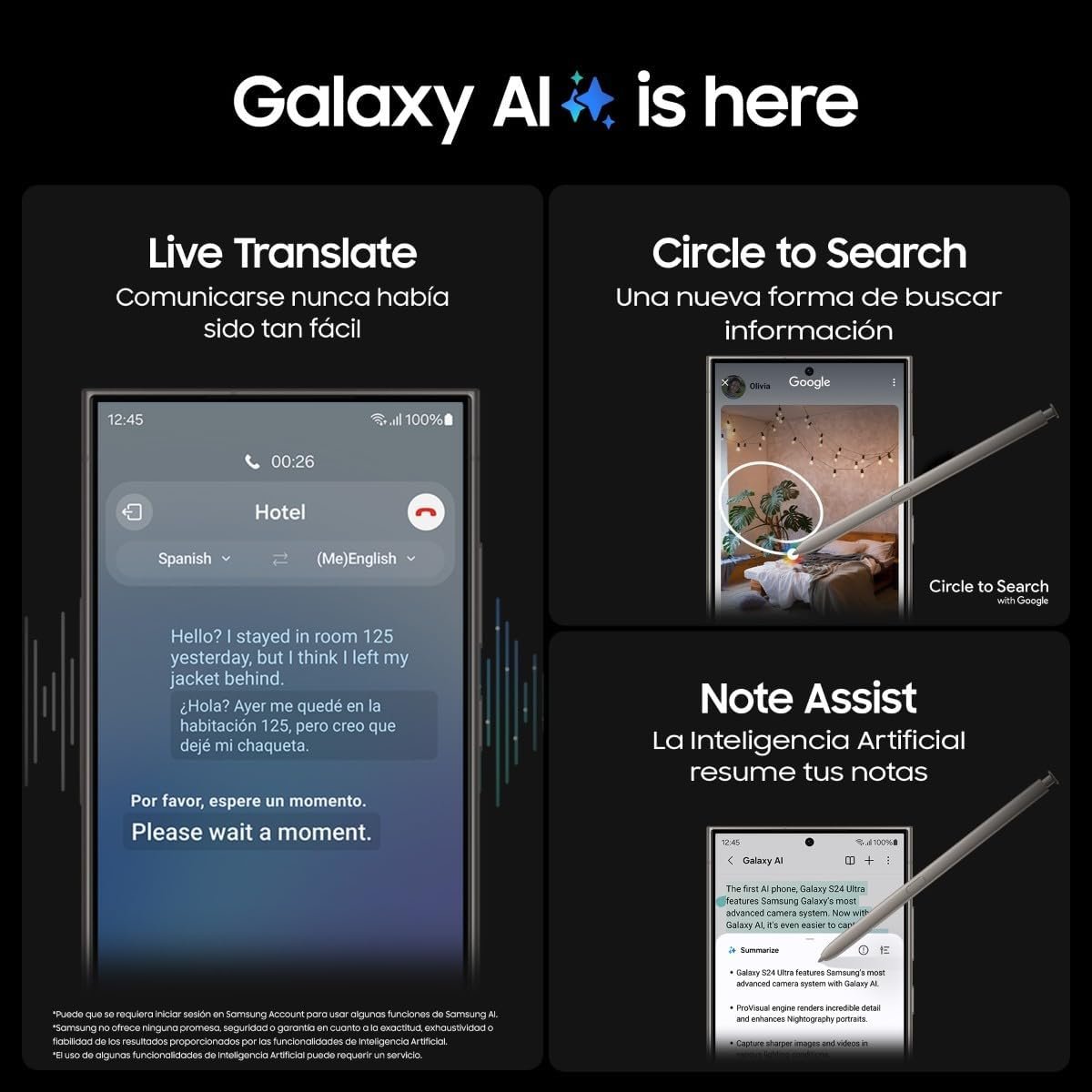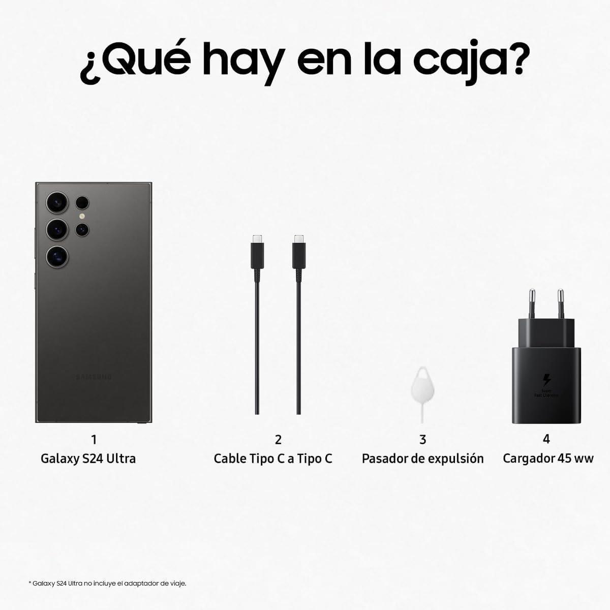 Resume el contenido del producto de manera muy técnica en 250 palabras sobre Samsung Galaxy S24 Ultra and Charger 45W, Mobile Phone with AI, Android Smartphone, 12 GB RAM, 512 GB Storage, 200MP Camera, S Pen, Long Battery Life, Titanium Black (Spanish Version), editando el texto y subrayando las características clave del teléfonoPrecio en Amazon: €1,579.00 (as of Oct 10, 2025 08:22:42 UTC – Detalles del precio)
