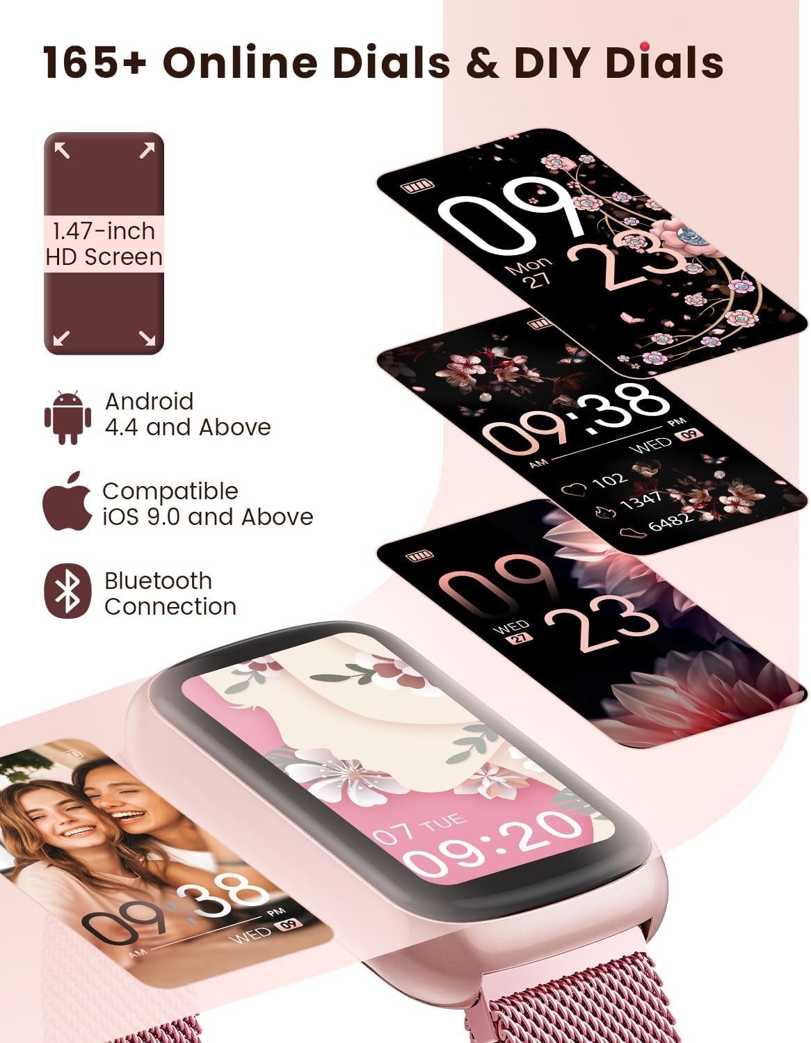 #Sanorum #Womens #Smart #Watch #Inch #Womens #Smart #Bracelet #Straps #IP68 #Female #Function #Heart #Rate #Monitor #SpO2 #Sleep #Sports #Modes #Pedometer #Smartwatch #iOS #Android #Pink